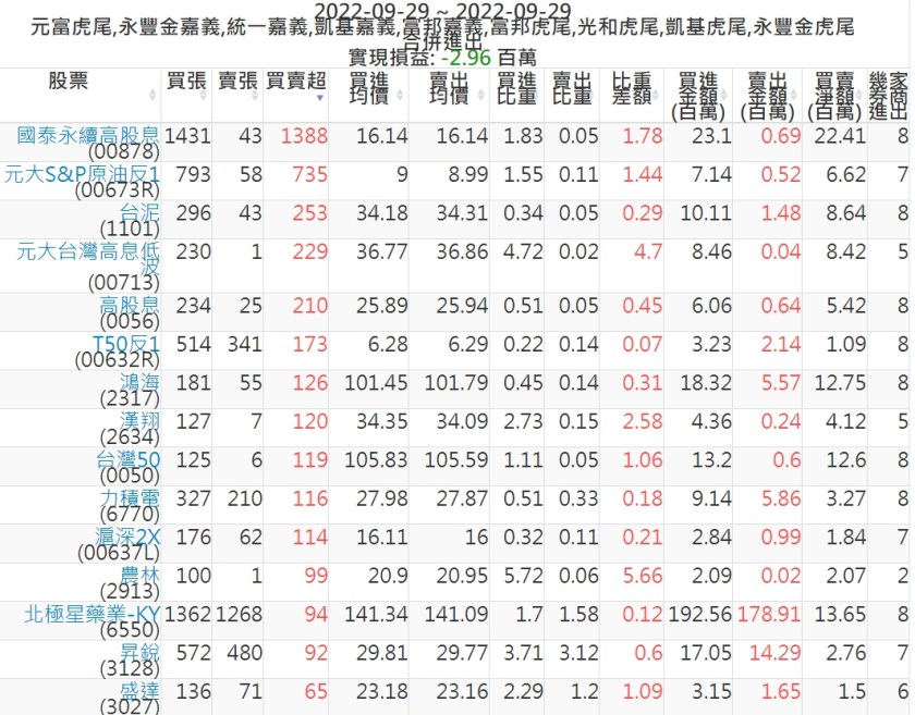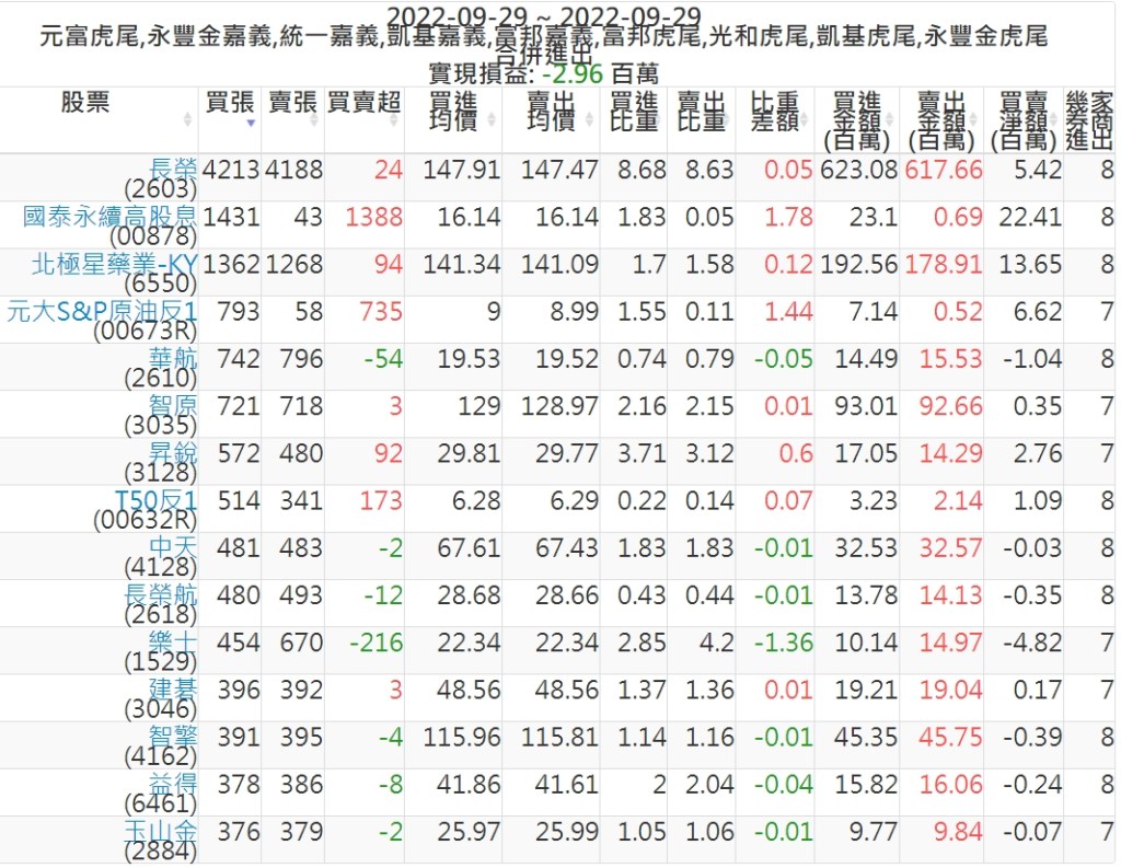 2022-0929主力買賣超個股 2022-09-30 股狗網小編 籌碼面每日資訊 發表留言 投資達人APP上線囉!!!『安裝APP』: 可參考下文 『如何查詢當沖、隔日沖分公司券商買賣』 主力當沖券商: 『元富虎尾』,『永豐金嘉義』,『統一嘉義』,『凱基嘉義』,『富邦嘉義』,『富邦虎尾』,『光和虎尾』,『凱基虎尾』,『永豐金虎尾』。 『當沖標的』 『買超股票』 『賣超股票』 免責宣言 本網站文章所提供資訊僅供參考,並無任何推介買賣之意,投資人應自行承擔交易風險。 分享此文: 分享到 X(在新視窗中開啟) X 分享到 Facebook(在新視窗中開啟) Facebook 喜歡 正在載入...