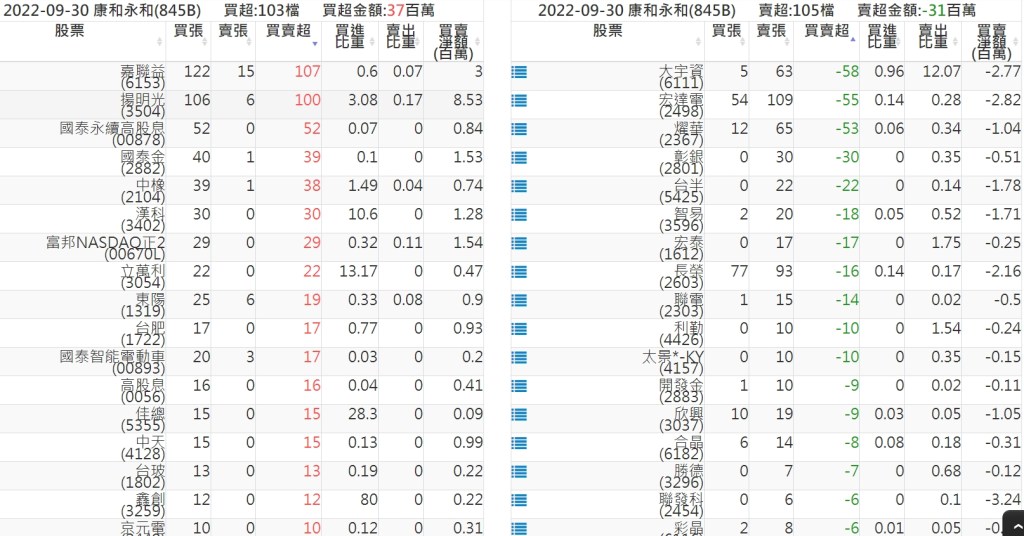 2022-0930關鍵券商買賣超 2022-10-01 股狗網小編 籌碼面每日資訊 發表留言 投資達人APP上線囉!!!『安裝APP』: 關鍵券商買賣超: 臺銀證券(1040): 台灣摩根士丹利(1470): 凱基台北(9268): 凱基信義(9216): 元大土城永寧(9875): 康和永和(845B) : 富邦建國(9658): 免責宣言 本網站文章所提供資訊僅供參考,並無任何推介買賣之意,投資人應自行承擔交易風險。 分享此文: 按一下即可分享至 X(在新視窗中開啟) X 按一下以分享至 Facebook(在新視窗中開啟) Facebook 喜歡 正在載入...