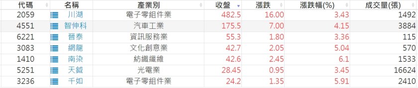 2022-1004股價創20日新高爆量上漲股 2022-10-05 股狗網小編 選股條件 發表留言 投資達人APP上線囉!!!『安裝APP』: 利用股狗選股的選股條件可以【挑選突破20日新高,爆量上漲起漲點股票】 1.股狗選股 https://www.stockdog.com.tw 2.選股條件: a.收盤價創20日新高 b.當日漲幅 > 2% 免責宣言 本網站文章所提供資訊僅供參考,並無任何推介買賣之意,投資人應自行承擔交易風險。 分享此文: 按一下即可分享至 X(在新視窗中開啟) X 按一下以分享至 Facebook(在新視窗中開啟) Facebook 喜歡 正在載入...