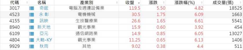 2022-1005股價創20日新高爆量上漲股 2022-10-06 股狗網小編 選股條件 發表留言 投資達人APP上線囉!!!『安裝APP』: 利用股狗選股的選股條件可以【挑選突破20日新高,爆量上漲起漲點股票】 1.股狗選股 https://www.stockdog.com.tw 2.選股條件: a.收盤價創20日新高 b.當日漲幅 > 2% 免責宣言 本網站文章所提供資訊僅供參考,並無任何推介買賣之意,投資人應自行承擔交易風險。 分享此文: 按一下即可分享至 X(在新視窗中開啟) X 按一下以分享至 Facebook(在新視窗中開啟) Facebook 喜歡 正在載入...