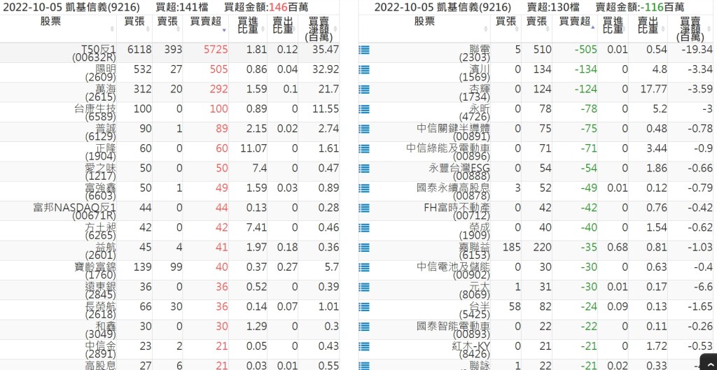 2022-1005關鍵券商買賣超 2022-10-06 股狗網小編 籌碼面每日資訊 發表留言 投資達人APP上線囉!!!『安裝APP』: 關鍵券商買賣超: 臺銀證券(1040): 台灣摩根士丹利(1470): 凱基台北(9268): 凱基信義(9216): 元大土城永寧(9875): 康和永和(845B) : 富邦建國(9658): 免責宣言 本網站文章所提供資訊僅供參考,並無任何推介買賣之意,投資人應自行承擔交易風險。 分享此文: 按一下即可分享至 X(在新視窗中開啟) X 按一下以分享至 Facebook(在新視窗中開啟) Facebook 喜歡 正在載入...