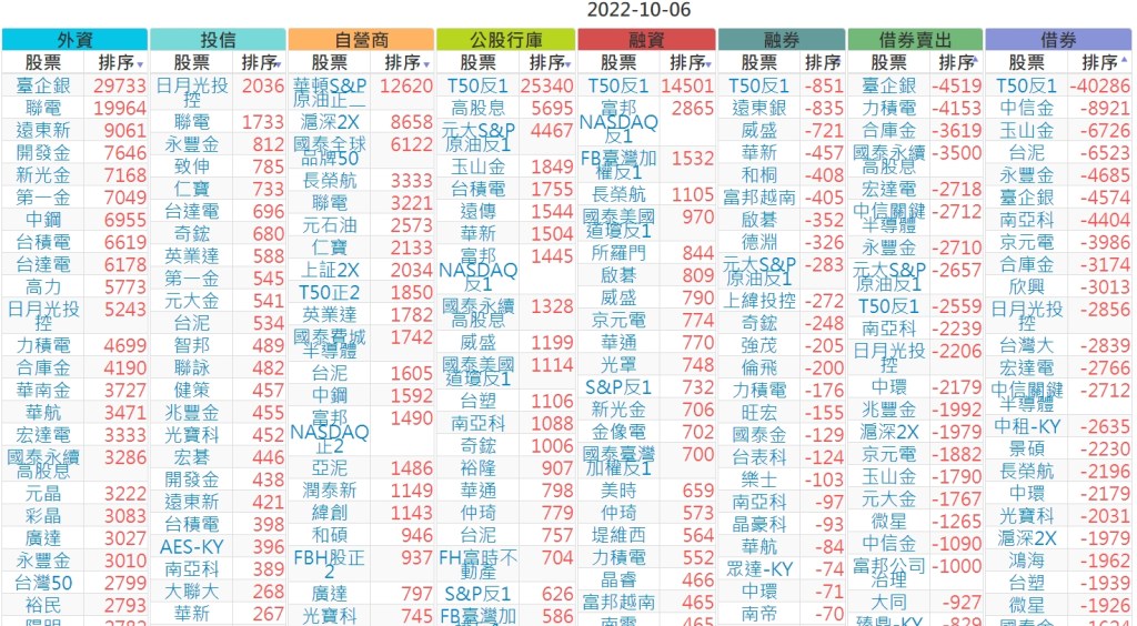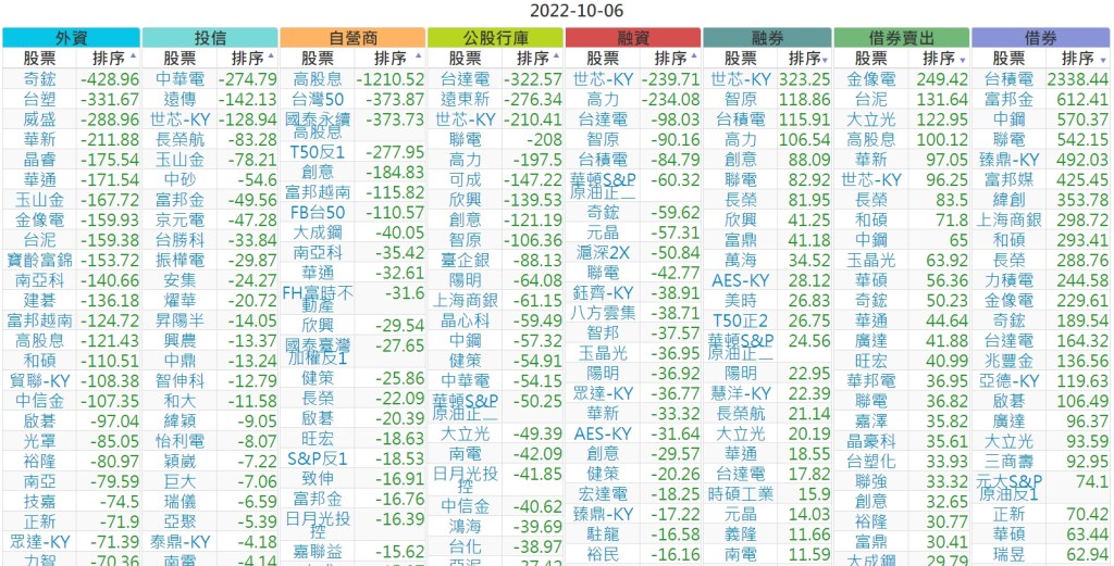 2022-1006上市【外資、投信】買賣超個股 2022-10-07 股狗網小編 投資誌-大盤 發表留言 投資達人APP上線囉!!!『安裝APP』 上市:【外資、投信】買超(依金額) (單位:百萬) 上市:【外資、投信】賣超(依金額) (單位:百萬) 上市:【外資、投信】買超(依張數) (單位:張數) 上市:【外資、投信】賣超(依張數) (單位:張數) 免責宣言 本網站文章所提供資訊僅供參考,並無任何推介買賣之意,投資人應自行承擔交易風險。 分享此文: 按一下即可分享至 X(在新視窗中開啟) X 按一下以分享至 Facebook(在新視窗中開啟) Facebook 喜歡 正在載入...