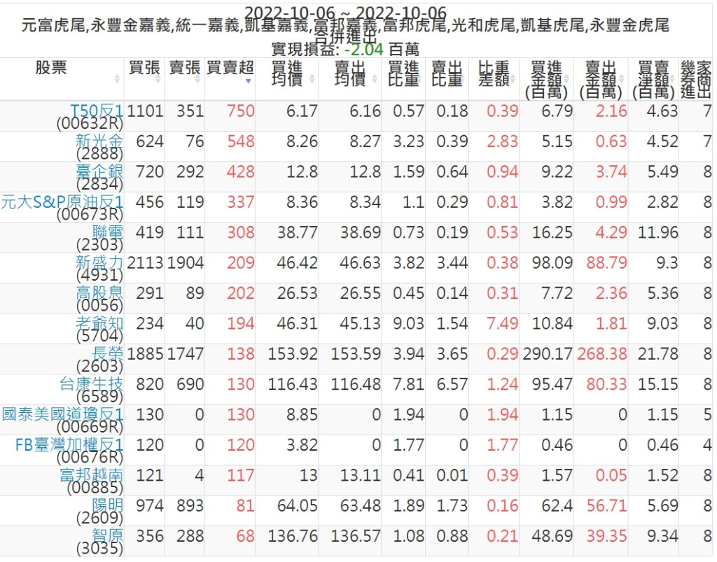 2022-1006主力買賣超個股 2022-10-07 股狗網小編 籌碼面每日資訊 發表留言 投資達人APP上線囉!!!『安裝APP』: 可參考下文 『如何查詢當沖、隔日沖分公司券商買賣』 主力當沖券商: 『元富虎尾』,『永豐金嘉義』,『統一嘉義』,『凱基嘉義』,『富邦嘉義』,『富邦虎尾』,『光和虎尾』,『凱基虎尾』,『永豐金虎尾』。 『當沖標的』 『買超股票』 『賣超股票』 免責宣言 本網站文章所提供資訊僅供參考,並無任何推介買賣之意,投資人應自行承擔交易風險。 分享此文: 按一下即可分享至 X(在新視窗中開啟) X 按一下以分享至 Facebook(在新視窗中開啟) Facebook 喜歡 正在載入...