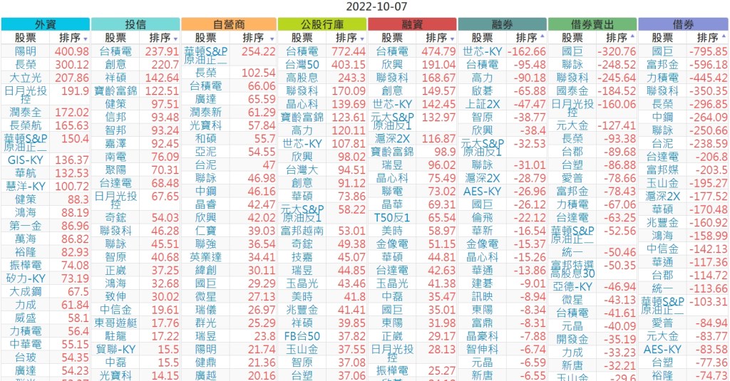 2022-1007上市【外資、投信】買賣超個股 2022-10-08 股狗網小編 投資誌-大盤 發表留言 投資達人APP上線囉!!!『安裝APP』 上市:【外資、投信】買超(依金額) (單位:百萬) 上市:【外資、投信】賣超(依金額) (單位:百萬) 上市:【外資、投信】買超(依張數) (單位:張數) 上市:【外資、投信】賣超(依張數) (單位:張數) 免責宣言 本網站文章所提供資訊僅供參考,並無任何推介買賣之意,投資人應自行承擔交易風險。 分享此文: 按一下即可分享至 X(在新視窗中開啟) X 按一下以分享至 Facebook(在新視窗中開啟) Facebook 喜歡 正在載入...