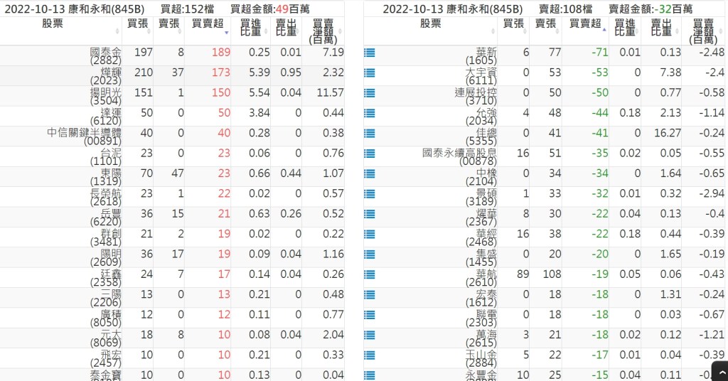 2022-1013關鍵券商買賣超 2022-10-14 股狗網小編 籌碼面每日資訊 發表留言 投資達人APP上線囉!!!『安裝APP』: 關鍵券商買賣超: 臺銀證券(1040): 台灣摩根士丹利(1470): 凱基台北(9268): 凱基信義(9216): 元大土城永寧(9875): 康和永和(845B) : 富邦建國(9658): 免責宣言 本網站文章所提供資訊僅供參考,並無任何推介買賣之意,投資人應自行承擔交易風險。 分享此文: 分享到 X(在新視窗中開啟) X 分享到 Facebook(在新視窗中開啟) Facebook 喜歡 正在載入...