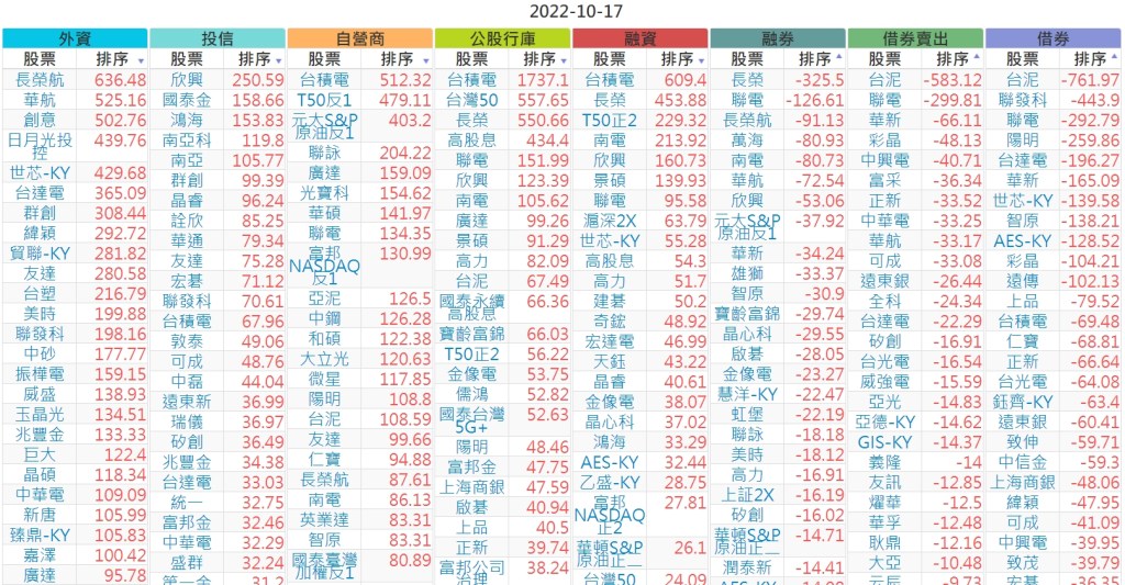 2022-1017上市【外資、投信】買賣超個股 2022-10-18 股狗網小編 投資誌-大盤 發表留言 投資達人APP上線囉!!!『安裝APP』 上市:【外資、投信】買超(依金額) (單位:百萬) 上市:【外資、投信】賣超(依金額) (單位:百萬) 上市:【外資、投信】買超(依張數) (單位:張數) 上市:【外資、投信】賣超(依張數) (單位:張數) 免責宣言 本網站文章所提供資訊僅供參考,並無任何推介買賣之意,投資人應自行承擔交易風險。 分享此文: 按一下即可分享至 X(在新視窗中開啟) X 按一下以分享至 Facebook(在新視窗中開啟) Facebook 喜歡 正在載入...