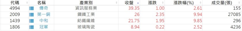 2022-1025股價創20日新高爆量上漲股 2022-10-26 股狗網小編 選股條件 發表留言 投資達人APP上線囉!!!『安裝APP』: 利用股狗選股的選股條件可以【挑選突破20日新高,爆量上漲起漲點股票】 1.股狗選股 https://www.stockdog.com.tw 2.選股條件: a.收盤價創20日新高 b.當日漲幅 > 2% 免責宣言 本網站文章所提供資訊僅供參考,並無任何推介買賣之意,投資人應自行承擔交易風險。 分享此文: 按一下即可分享至 X(在新視窗中開啟) X 按一下以分享至 Facebook(在新視窗中開啟) Facebook 喜歡 正在載入...