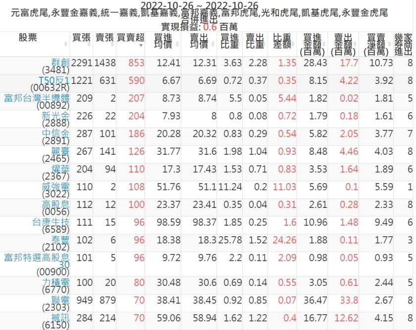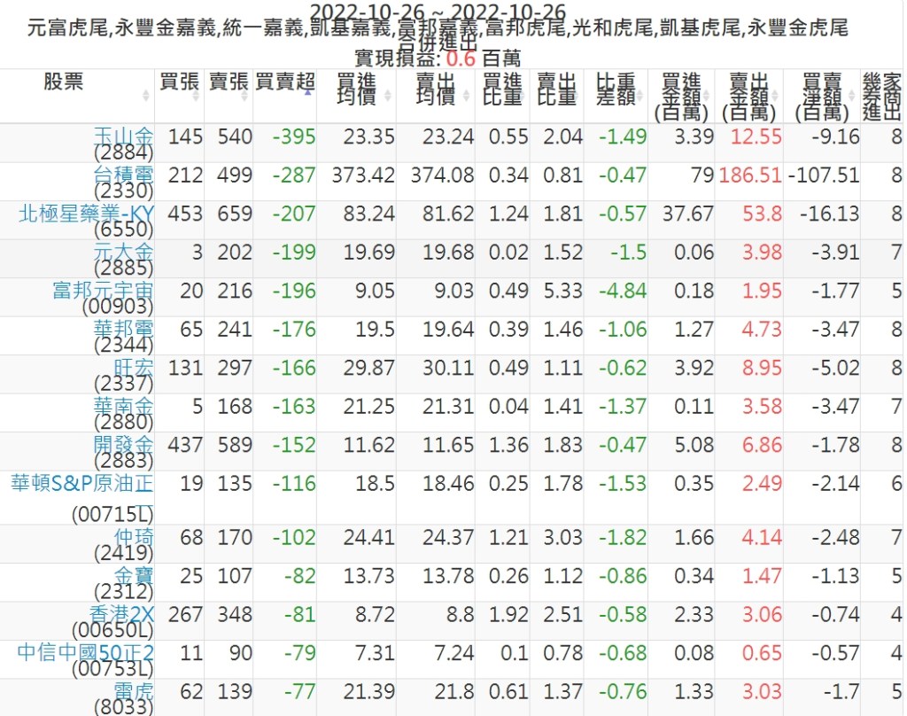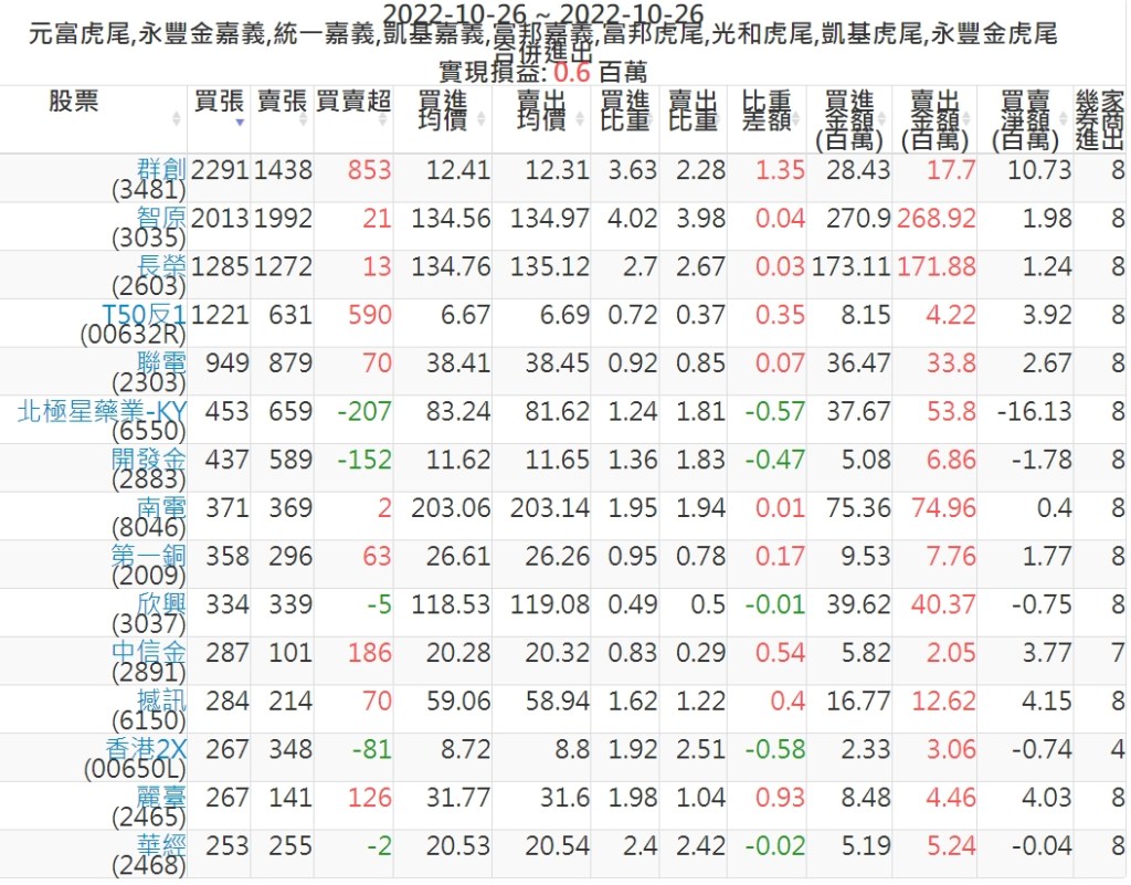 2022-1026主力買賣超個股 2022-10-27 股狗網小編 籌碼面每日資訊 發表留言 投資達人APP上線囉!!!『安裝APP』: 可參考下文 『如何查詢當沖、隔日沖分公司券商買賣』 主力當沖券商: 『元富虎尾』,『永豐金嘉義』,『統一嘉義』,『凱基嘉義』,『富邦嘉義』,『富邦虎尾』,『光和虎尾』,『凱基虎尾』,『永豐金虎尾』。 『當沖標的』 『買超股票』 『賣超股票』 免責宣言 本網站文章所提供資訊僅供參考,並無任何推介買賣之意,投資人應自行承擔交易風險。 分享此文: 按一下即可分享至 X(在新視窗中開啟) X 按一下以分享至 Facebook(在新視窗中開啟) Facebook 喜歡 正在載入...