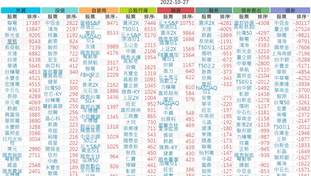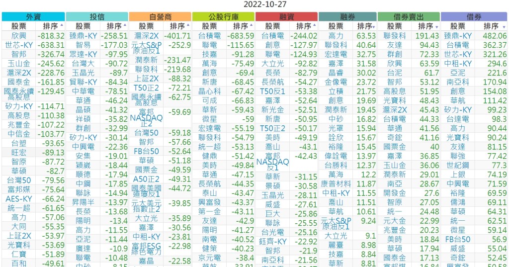 2022-1027上市【外資、投信】買賣超個股 2022-10-28 股狗網小編 投資誌-大盤 發表留言 投資達人APP上線囉!!!『安裝APP』 上市:【外資、投信】買超(依金額) (單位:百萬) 上市:【外資、投信】賣超(依金額) (單位:百萬) 上市:【外資、投信】買超(依張數) (單位:張數) 上市:【外資、投信】賣超(依張數) (單位:張數) 免責宣言 本網站文章所提供資訊僅供參考,並無任何推介買賣之意,投資人應自行承擔交易風險。 分享此文: 按一下即可分享至 X(在新視窗中開啟) X 按一下以分享至 Facebook(在新視窗中開啟) Facebook 喜歡 正在載入...