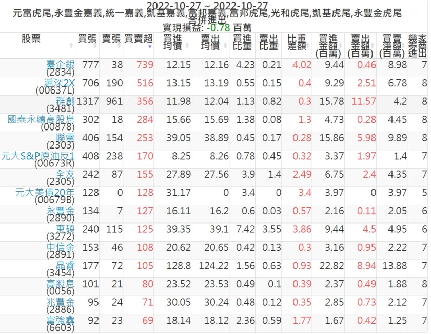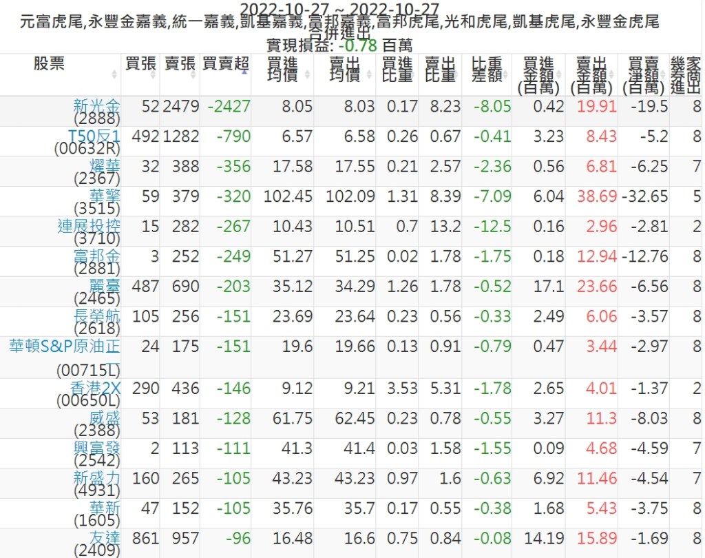 2022-1027主力買賣超個股 2022-10-28 股狗網小編 籌碼面每日資訊 發表留言 投資達人APP上線囉!!!『安裝APP』: 可參考下文 『如何查詢當沖、隔日沖分公司券商買賣』 主力當沖券商: 『元富虎尾』,『永豐金嘉義』,『統一嘉義』,『凱基嘉義』,『富邦嘉義』,『富邦虎尾』,『光和虎尾』,『凱基虎尾』,『永豐金虎尾』。 『當沖標的』 『買超股票』 『賣超股票』 免責宣言 本網站文章所提供資訊僅供參考,並無任何推介買賣之意,投資人應自行承擔交易風險。 分享此文: 按一下即可分享至 X(在新視窗中開啟) X 按一下以分享至 Facebook(在新視窗中開啟) Facebook 喜歡 正在載入...