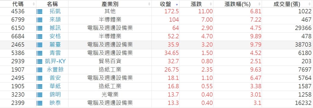 2022-1027股價創20日新高爆量上漲股 2022-10-28 股狗網小編 選股條件 發表留言 投資達人APP上線囉!!!『安裝APP』: 利用股狗選股的選股條件可以【挑選突破20日新高,爆量上漲起漲點股票】 1.股狗選股 https://www.stockdog.com.tw 2.選股條件: a.收盤價創20日新高 b.當日漲幅 > 2% 免責宣言 本網站文章所提供資訊僅供參考,並無任何推介買賣之意,投資人應自行承擔交易風險。 分享此文: 按一下即可分享至 X(在新視窗中開啟) X 按一下以分享至 Facebook(在新視窗中開啟) Facebook 喜歡 正在載入...