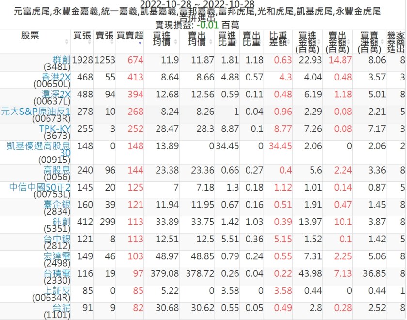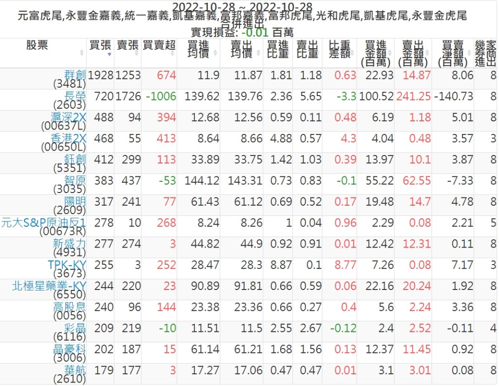 2022-1028主力買賣超個股 2022-10-29 股狗網小編 籌碼面每日資訊 發表留言 投資達人APP上線囉!!!『安裝APP』: 可參考下文 『如何查詢當沖、隔日沖分公司券商買賣』 主力當沖券商: 『元富虎尾』,『永豐金嘉義』,『統一嘉義』,『凱基嘉義』,『富邦嘉義』,『富邦虎尾』,『光和虎尾』,『凱基虎尾』,『永豐金虎尾』。 『當沖標的』 『買超股票』 『賣超股票』 免責宣言 本網站文章所提供資訊僅供參考,並無任何推介買賣之意,投資人應自行承擔交易風險。 分享此文: 按一下即可分享至 X(在新視窗中開啟) X 按一下以分享至 Facebook(在新視窗中開啟) Facebook 喜歡 正在載入...