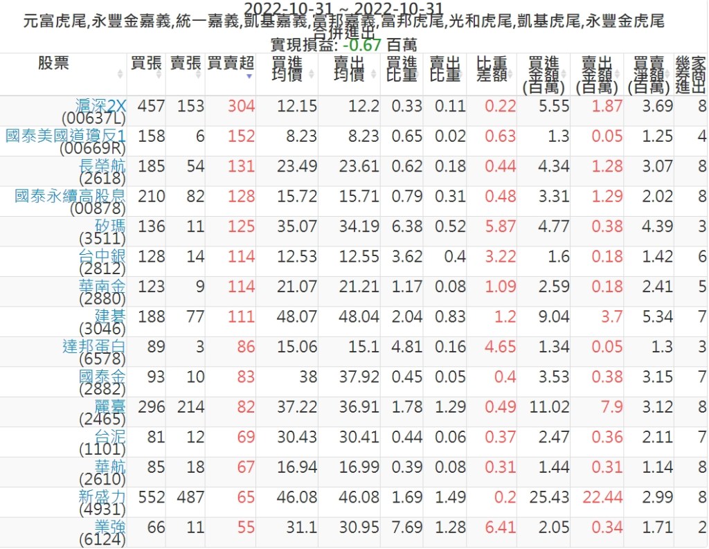 2022-1031主力買賣超個股 2022-11-01 股狗網小編 籌碼面每日資訊 發表留言 投資達人APP上線囉!!!『安裝APP』: 可參考下文 『如何查詢當沖、隔日沖分公司券商買賣』 主力當沖券商: 『元富虎尾』,『永豐金嘉義』,『統一嘉義』,『凱基嘉義』,『富邦嘉義』,『富邦虎尾』,『光和虎尾』,『凱基虎尾』,『永豐金虎尾』。 『當沖標的』 『買超股票』 『賣超股票』 免責宣言 本網站文章所提供資訊僅供參考,並無任何推介買賣之意,投資人應自行承擔交易風險。 分享此文: 分享到 X(在新視窗中開啟) X 分享到 Facebook(在新視窗中開啟) Facebook 喜歡 正在載入...