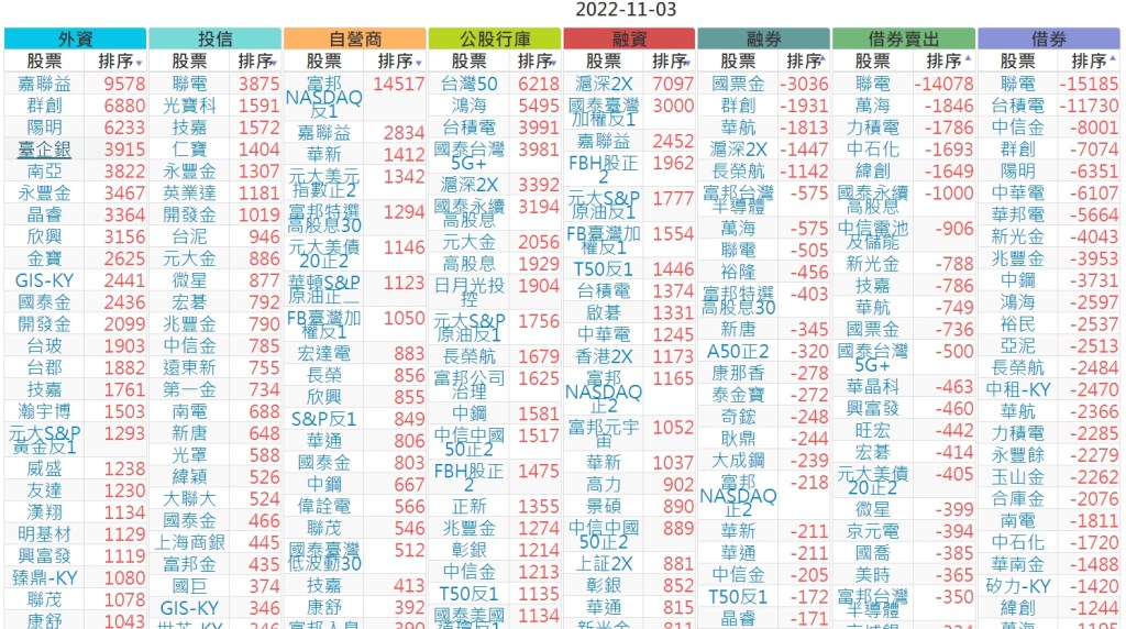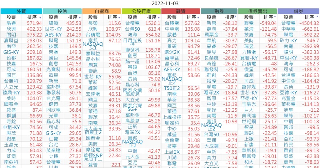 2022-1103上市【外資、投信】買賣超個股 2022-11-04 股狗網小編 投資誌-大盤 發表留言 投資達人APP上線囉!!!『安裝APP』 上市:【外資、投信】買超(依金額) (單位:百萬) 上市:【外資、投信】賣超(依金額) (單位:百萬) 上市:【外資、投信】買超(依張數) (單位:張數) 上市:【外資、投信】賣超(依張數) (單位:張數) 免責宣言 本網站文章所提供資訊僅供參考,並無任何推介買賣之意,投資人應自行承擔交易風險。 分享此文: 分享到 X(在新視窗中開啟) X 分享到 Facebook(在新視窗中開啟) Facebook 喜歡 正在載入...