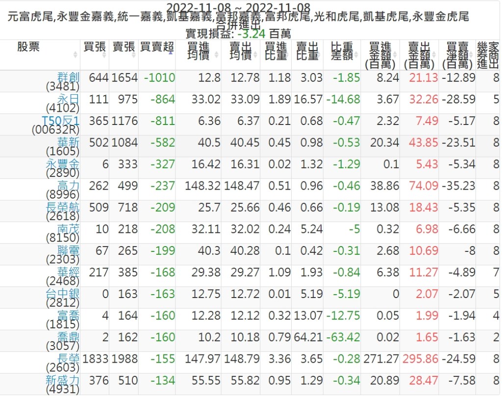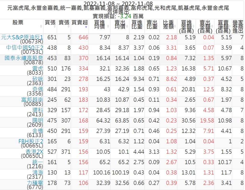 2022-1108主力買賣超個股 2022-11-09 股狗網小編 籌碼面每日資訊 發表留言 投資達人APP上線囉!!!『安裝APP』: 可參考下文 『如何查詢當沖、隔日沖分公司券商買賣』 主力當沖券商: 『元富虎尾』,『永豐金嘉義』,『統一嘉義』,『凱基嘉義』,『富邦嘉義』,『富邦虎尾』,『光和虎尾』,『凱基虎尾』,『永豐金虎尾』。 『當沖標的』 『買超股票』 『賣超股票』 免責宣言 本網站文章所提供資訊僅供參考,並無任何推介買賣之意,投資人應自行承擔交易風險。 分享此文: 按一下即可分享至 X(在新視窗中開啟) X 按一下以分享至 Facebook(在新視窗中開啟) Facebook 喜歡 正在載入...