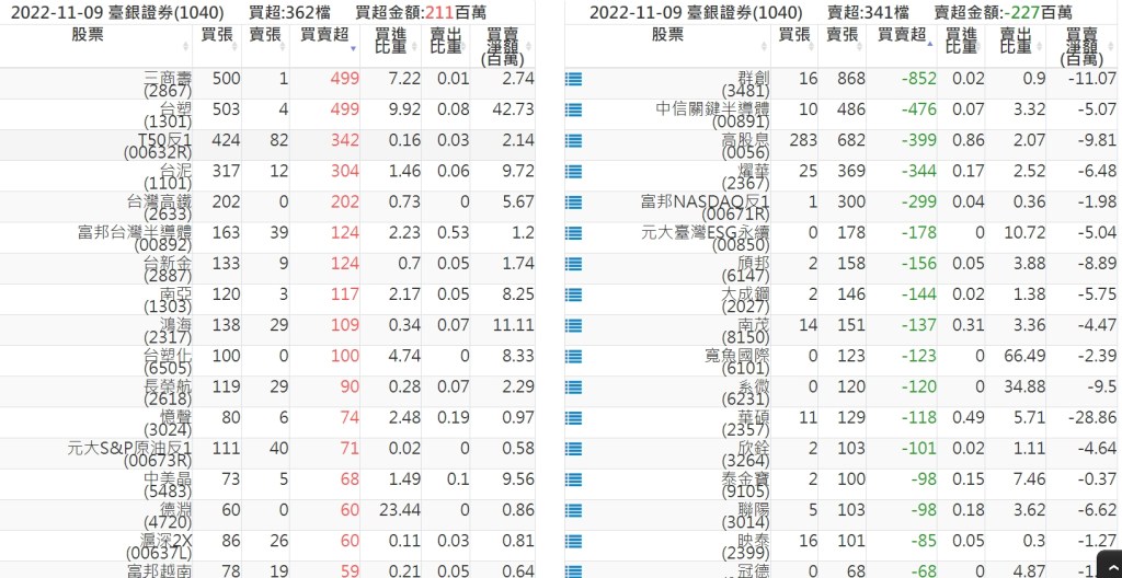 2022-1109關鍵券商買賣超 2022-11-10 股狗網小編 籌碼面每日資訊 發表留言 投資達人APP上線囉!!!『安裝APP』: 關鍵券商買賣超: 臺銀證券(1040): 台灣摩根士丹利(1470): 凱基台北(9268): 凱基信義(9216): 元大土城永寧(9875): 康和永和(845B) : 富邦建國(9658): 免責宣言 本網站文章所提供資訊僅供參考,並無任何推介買賣之意,投資人應自行承擔交易風險。 分享此文: 按一下即可分享至 X(在新視窗中開啟) X 按一下以分享至 Facebook(在新視窗中開啟) Facebook 喜歡 正在載入...