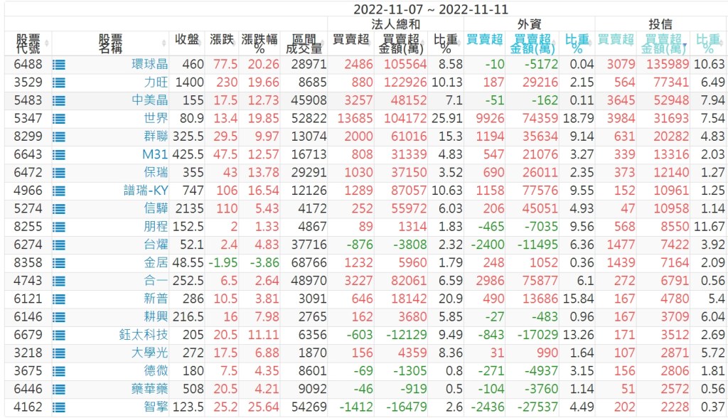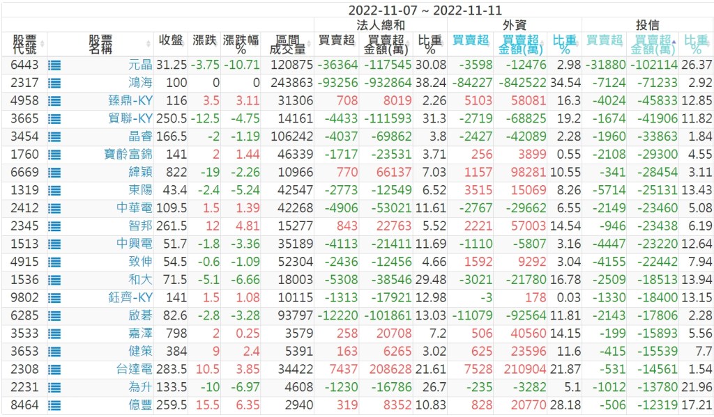 2022/11/07~2022/11/11近5日【投信】買賣超個股 2022-11-13 股狗網小編 投資誌-大盤 發表留言 投資達人APP上線囉!!!『安裝APP』: 【上市投信買超個股】(以金額排行,單位:萬) 【上市投信賣超個股】(以金額排行,單位:萬) 【上櫃投信買超個股】(以金額排行,單位:萬) 【上櫃投信賣超個股】(以金額排行,單位:萬) 免責宣言 本網站文章所提供資訊僅供參考,並無任何推介買賣之意,投資人應自行承擔交易風險。 分享此文: 按一下即可分享至 X(在新視窗中開啟) X 按一下以分享至 Facebook(在新視窗中開啟) Facebook 喜歡 正在載入...