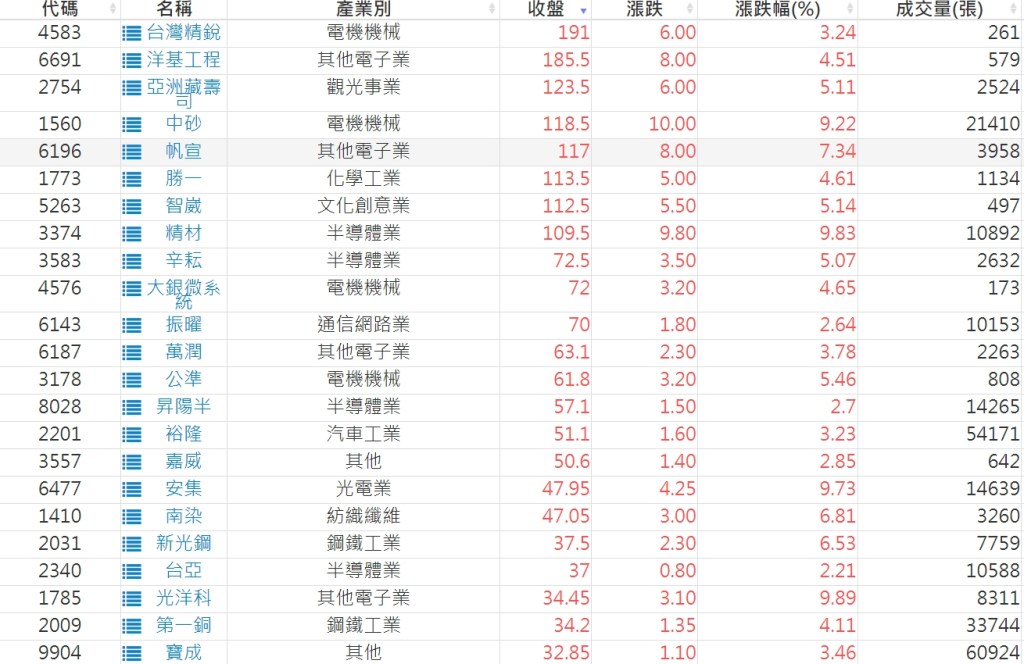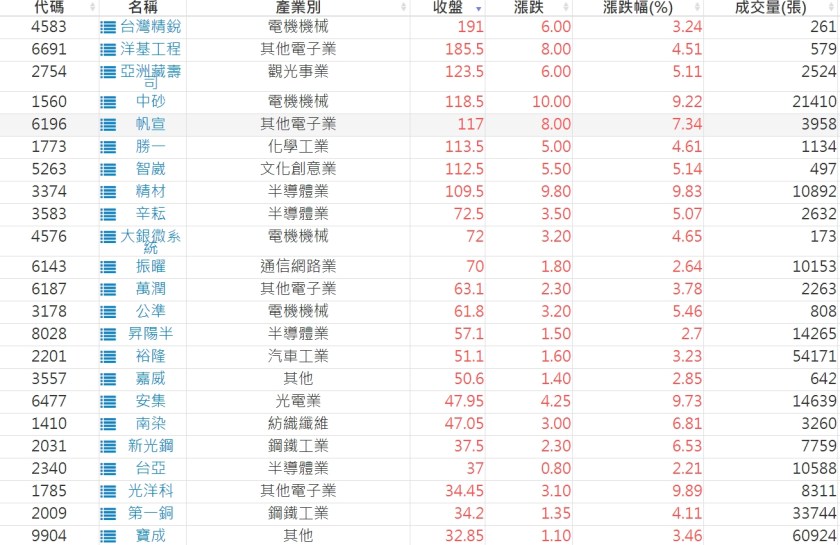 2022-1115股價創20日新高爆量上漲股 2022-11-16 股狗網小編 選股條件 發表留言 投資達人APP上線囉!!!『安裝APP』: 利用股狗選股的選股條件可以【挑選突破20日新高,爆量上漲起漲點股票】 1.股狗選股 https://www.stockdog.com.tw 2.選股條件: a.收盤價創20日新高 b.當日漲幅 > 2% 免責宣言 本網站文章所提供資訊僅供參考,並無任何推介買賣之意,投資人應自行承擔交易風險。 分享此文: 按一下即可分享至 X(在新視窗中開啟) X 按一下以分享至 Facebook(在新視窗中開啟) Facebook 喜歡 正在載入...