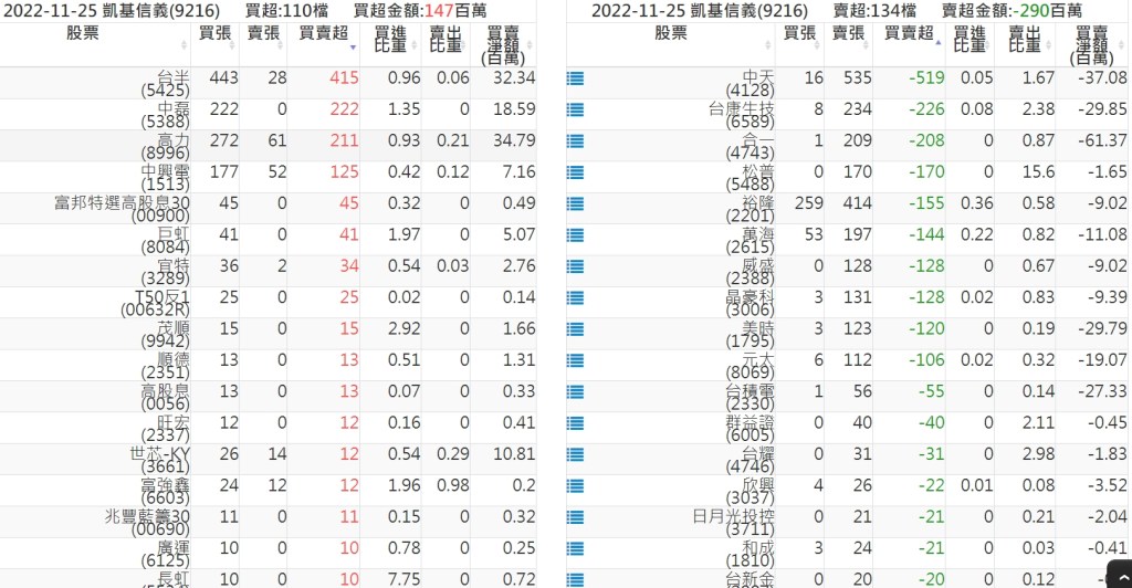 2022-1125關鍵券商買賣超 2022-11-26 股狗網小編 籌碼面每日資訊 發表留言 投資達人APP上線囉!!!『安裝APP』: 關鍵券商買賣超: 臺銀證券(1040): 台灣摩根士丹利(1470): 凱基台北(9268): 凱基信義(9216): 元大土城永寧(9875): 康和永和(845B) : 富邦建國(9658): 免責宣言 本網站文章所提供資訊僅供參考,並無任何推介買賣之意,投資人應自行承擔交易風險。 分享此文: 分享到 X(在新視窗中開啟) X 分享到 Facebook(在新視窗中開啟) Facebook 喜歡 正在載入...