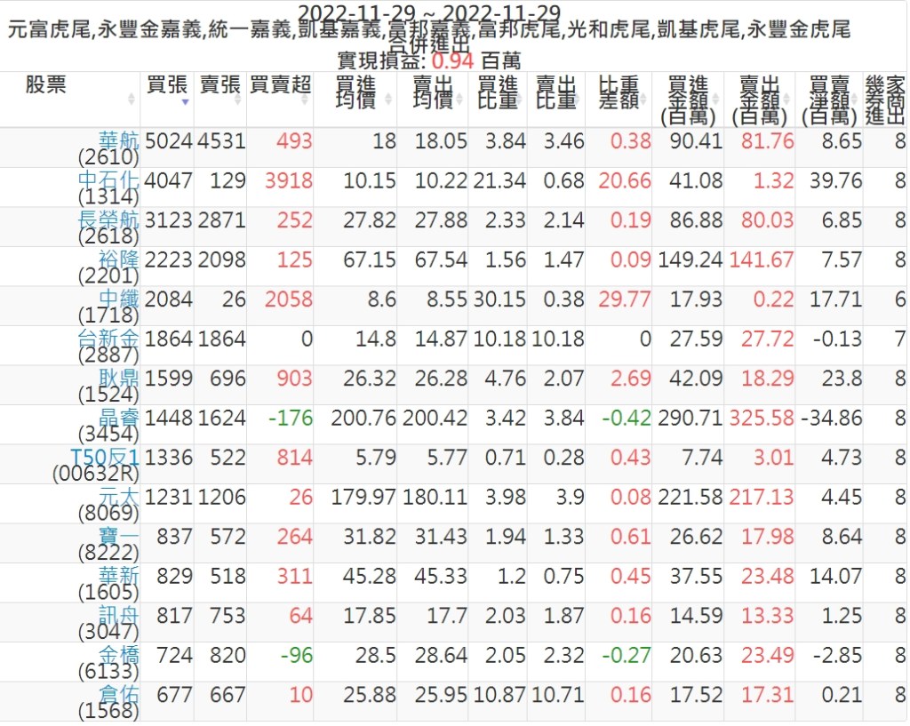 2022-1129主力買賣超個股 2022-11-30 股狗網小編 籌碼面每日資訊 發表留言 投資達人APP上線囉!!!『安裝APP』: 可參考下文 『如何查詢當沖、隔日沖分公司券商買賣』 主力當沖券商: 『元富虎尾』,『永豐金嘉義』,『統一嘉義』,『凱基嘉義』,『富邦嘉義』,『富邦虎尾』,『光和虎尾』,『凱基虎尾』,『永豐金虎尾』。 『當沖標的』 『買超股票』 『賣超股票』 免責宣言 本網站文章所提供資訊僅供參考,並無任何推介買賣之意,投資人應自行承擔交易風險。 分享此文: 按一下即可分享至 X(在新視窗中開啟) X 按一下以分享至 Facebook(在新視窗中開啟) Facebook 喜歡 正在載入...