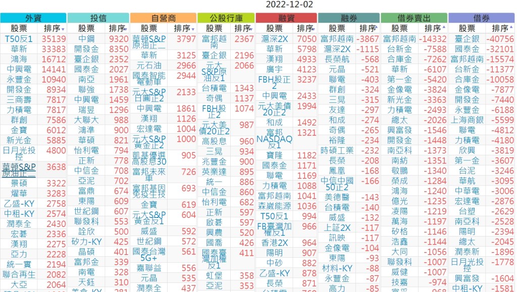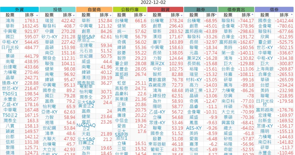 2022-1202上市【外資、投信】買賣超個股 2022-12-03 股狗網小編 投資誌-大盤 發表留言 投資達人APP上線囉!!!『安裝APP』 上市:【外資、投信】買超(依金額) (單位:百萬) 上市:【外資、投信】賣超(依金額) (單位:百萬) 上市:【外資、投信】買超(依張數) (單位:張數) 上市:【外資、投信】賣超(依張數) (單位:張數) 免責宣言 本網站文章所提供資訊僅供參考,並無任何推介買賣之意,投資人應自行承擔交易風險。 分享此文: 按一下即可分享至 X(在新視窗中開啟) X 按一下以分享至 Facebook(在新視窗中開啟) Facebook 喜歡 正在載入...