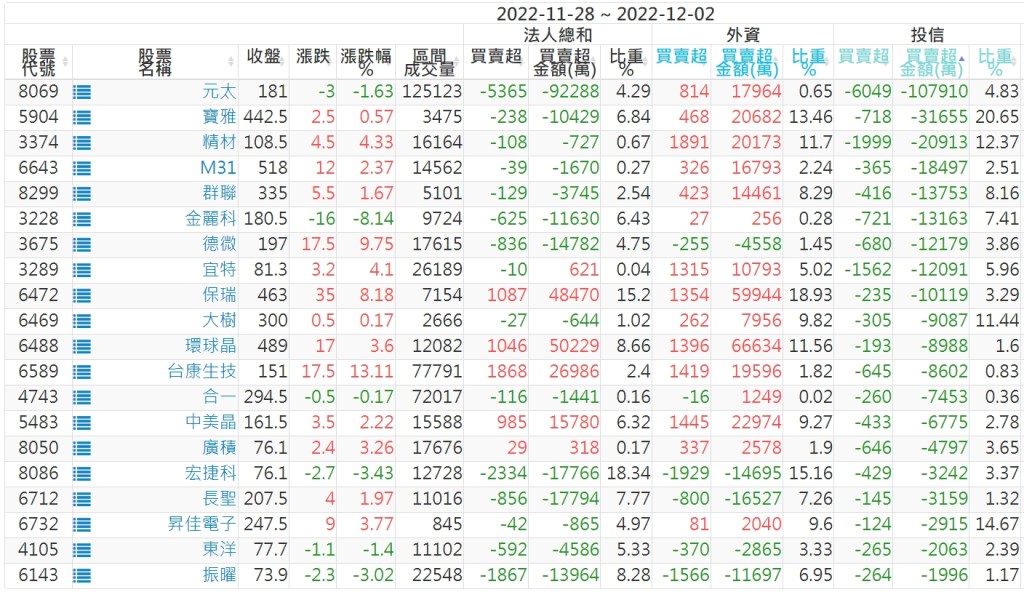 2022/11/28~2022/12/02近5日【投信】買賣超個股 2022-12-04 股狗網小編 投資誌-大盤 發表留言 投資達人APP上線囉!!!『安裝APP』: 【上市投信買超個股】(以金額排行,單位:萬) 【上市投信賣超個股】(以金額排行,單位:萬) 【上櫃投信買超個股】(以金額排行,單位:萬) 【上櫃投信賣超個股】(以金額排行,單位:萬) 免責宣言 本網站文章所提供資訊僅供參考,並無任何推介買賣之意,投資人應自行承擔交易風險。 分享此文: 分享到 X(在新視窗中開啟) X 分享到 Facebook(在新視窗中開啟) Facebook 喜歡 正在載入...