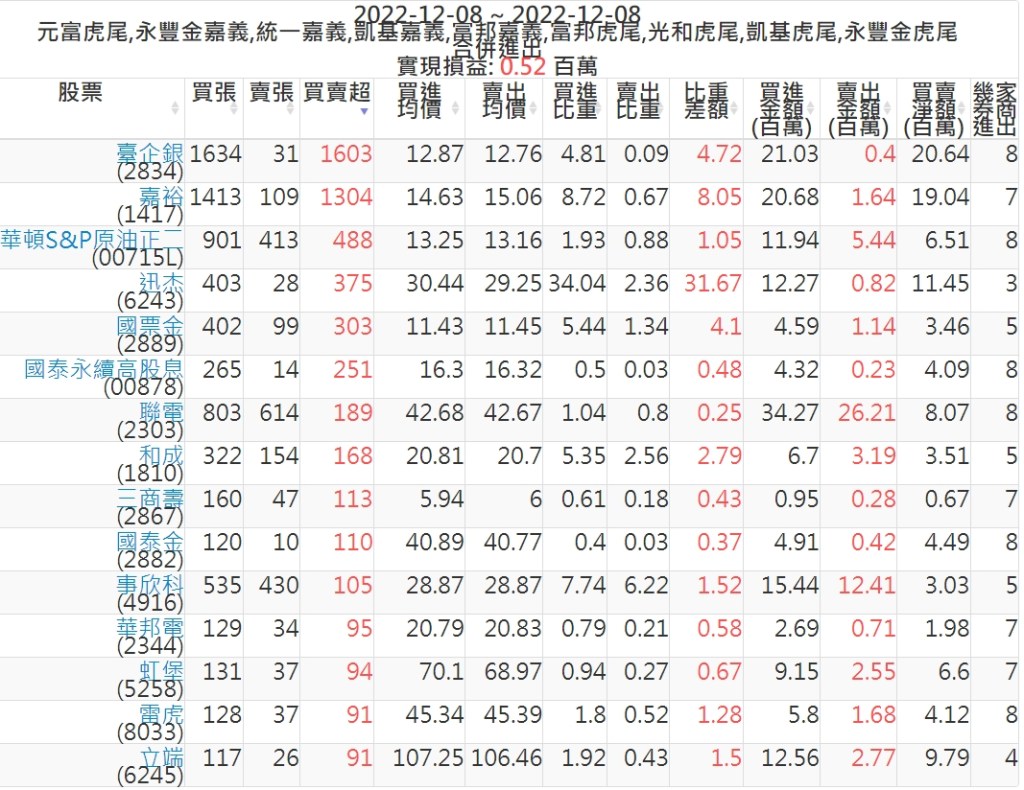 2022-1208主力買賣超個股 2022-12-09 股狗網小編 籌碼面每日資訊 發表留言 投資達人APP上線囉!!!『安裝APP』: 可參考下文 『如何查詢當沖、隔日沖分公司券商買賣』 主力當沖券商: 『元富虎尾』,『永豐金嘉義』,『統一嘉義』,『凱基嘉義』,『富邦嘉義』,『富邦虎尾』,『光和虎尾』,『凱基虎尾』,『永豐金虎尾』。 『當沖標的』 『買超股票』 『賣超股票』 免責宣言 本網站文章所提供資訊僅供參考,並無任何推介買賣之意,投資人應自行承擔交易風險。 分享此文: 按一下即可分享至 X(在新視窗中開啟) X 按一下以分享至 Facebook(在新視窗中開啟) Facebook 喜歡 正在載入...