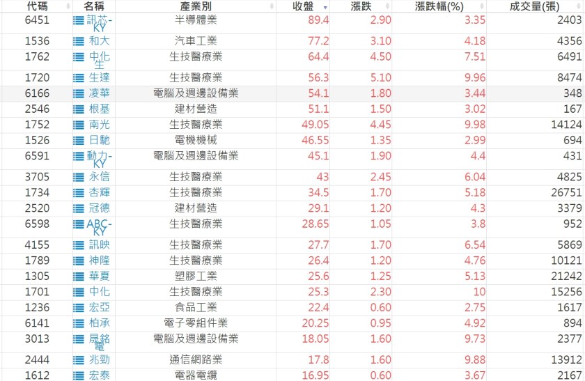 2022-1212股價創20日新高爆量上漲股 2022-12-13 股狗網小編 選股條件 發表留言 投資達人APP上線囉!!!『安裝APP』: 利用股狗選股的選股條件可以【挑選突破20日新高,爆量上漲起漲點股票】 1.股狗選股 https://www.stockdog.com.tw 2.選股條件: a.收盤價創20日新高 b.當日漲幅 > 2% 免責宣言 本網站文章所提供資訊僅供參考,並無任何推介買賣之意,投資人應自行承擔交易風險。 分享此文: 按一下即可分享至 X(在新視窗中開啟) X 按一下以分享至 Facebook(在新視窗中開啟) Facebook 喜歡 正在載入...