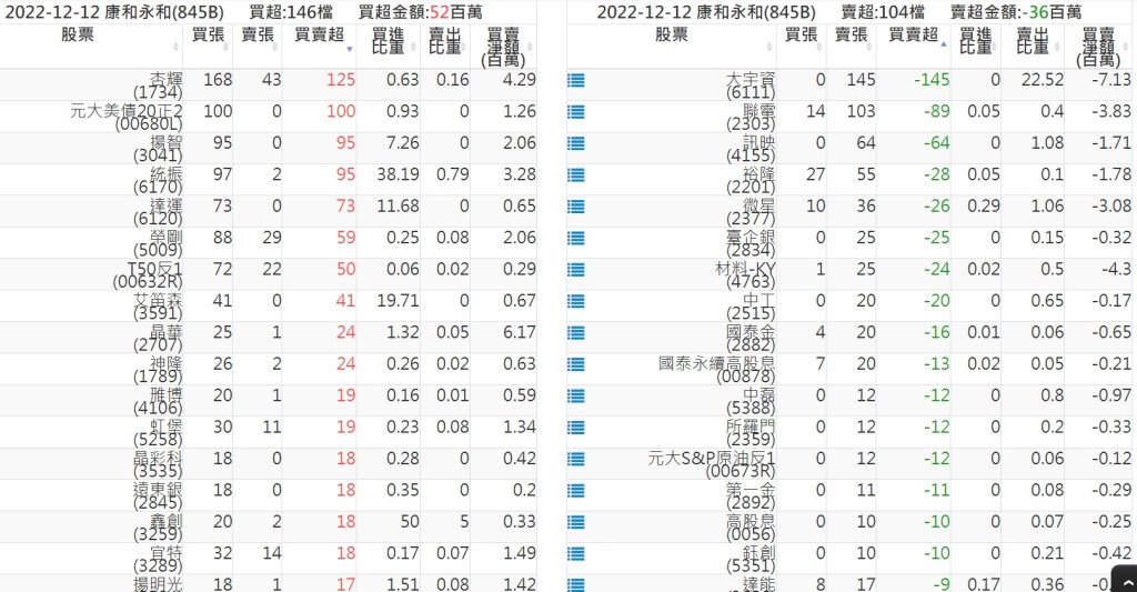 2022-1212關鍵券商買賣超 2022-12-13 股狗網小編 籌碼面每日資訊 發表留言 投資達人APP上線囉!!!『安裝APP』: 關鍵券商買賣超: 臺銀證券(1040): 台灣摩根士丹利(1470): 凱基台北(9268): 凱基信義(9216): 元大土城永寧(9875): 康和永和(845B) : 富邦建國(9658): 免責宣言 本網站文章所提供資訊僅供參考,並無任何推介買賣之意,投資人應自行承擔交易風險。 分享此文: 按一下即可分享至 X(在新視窗中開啟) X 按一下以分享至 Facebook(在新視窗中開啟) Facebook 喜歡 正在載入...