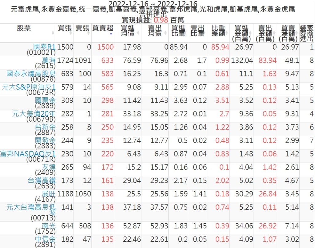 2022-1216主力買賣超個股 2022-12-17 股狗網小編 籌碼面每日資訊 發表留言 投資達人APP上線囉!!!『安裝APP』: 可參考下文 『如何查詢當沖、隔日沖分公司券商買賣』 主力當沖券商: 『元富虎尾』,『永豐金嘉義』,『統一嘉義』,『凱基嘉義』,『富邦嘉義』,『富邦虎尾』,『光和虎尾』,『凱基虎尾』,『永豐金虎尾』。 『當沖標的』 『買超股票』 『賣超股票』 免責宣言 本網站文章所提供資訊僅供參考,並無任何推介買賣之意,投資人應自行承擔交易風險。 分享此文: 按一下即可分享至 X(在新視窗中開啟) X 按一下以分享至 Facebook(在新視窗中開啟) Facebook 喜歡 正在載入...