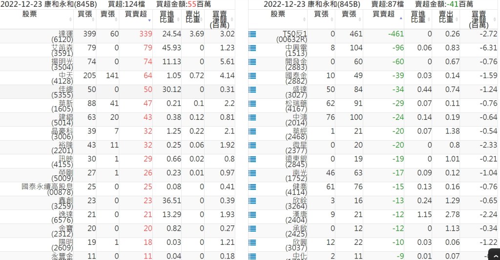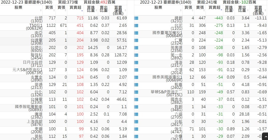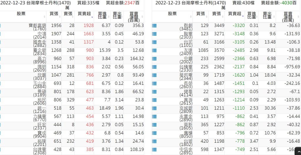 2022-1223關鍵券商買賣超 2022-12-24 股狗網小編 籌碼面每日資訊 發表留言 投資達人APP上線囉!!!『安裝APP』: 關鍵券商買賣超: 臺銀證券(1040): 台灣摩根士丹利(1470): 凱基台北(9268): 凱基信義(9216): 元大土城永寧(9875): 康和永和(845B) : 富邦建國(9658): 免責宣言 本網站文章所提供資訊僅供參考,並無任何推介買賣之意,投資人應自行承擔交易風險。 分享此文: 按一下即可分享至 X(在新視窗中開啟) X 按一下以分享至 Facebook(在新視窗中開啟) Facebook 喜歡 正在載入...