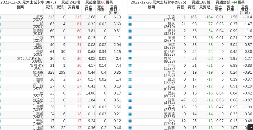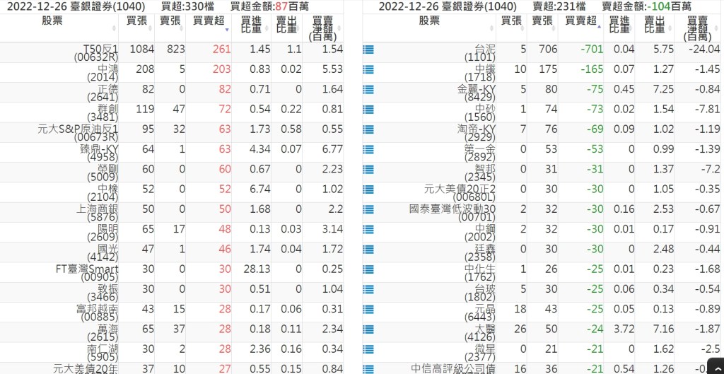 2022-1226關鍵券商買賣超 2022-12-27 股狗網小編 籌碼面每日資訊 發表留言 投資達人APP上線囉!!!『安裝APP』: 關鍵券商買賣超: 臺銀證券(1040): 台灣摩根士丹利(1470): 凱基台北(9268): 凱基信義(9216): 元大土城永寧(9875): 康和永和(845B) : 富邦建國(9658): 免責宣言 本網站文章所提供資訊僅供參考,並無任何推介買賣之意,投資人應自行承擔交易風險。 分享此文: 分享到 X(在新視窗中開啟) X 分享到 Facebook(在新視窗中開啟) Facebook 喜歡 正在載入...