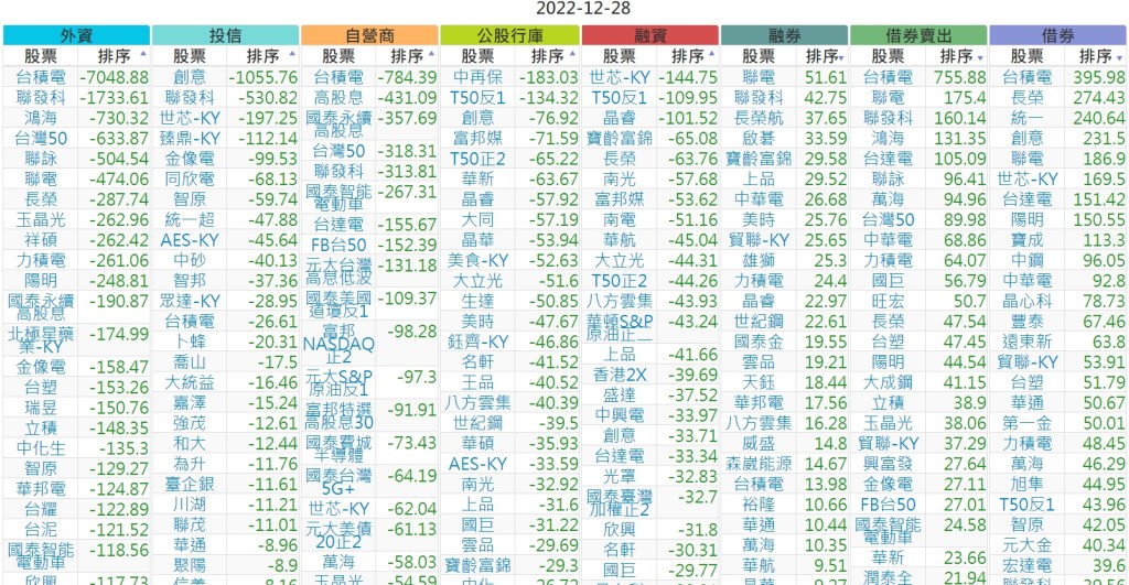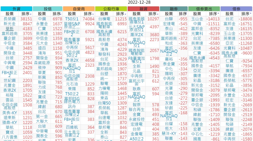 2022-1228上市【外資、投信】買賣超個股 2022-12-29 股狗網小編 投資誌-大盤 發表留言 投資達人APP上線囉!!!『安裝APP』 上市:【外資、投信】買超(依金額) (單位:百萬) 上市:【外資、投信】賣超(依金額) (單位:百萬) 上市:【外資、投信】買超(依張數) (單位:張數) 上市:【外資、投信】賣超(依張數) (單位:張數) 免責宣言 本網站文章所提供資訊僅供參考,並無任何推介買賣之意,投資人應自行承擔交易風險。 分享此文: 分享到 X(在新視窗中開啟) X 分享到 Facebook(在新視窗中開啟) Facebook 喜歡 正在載入...