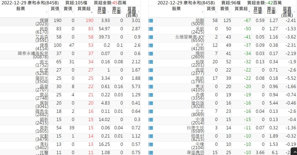 2022-1229關鍵券商買賣超 2022-12-30 股狗網小編 籌碼面每日資訊 發表留言 投資達人APP上線囉!!!『安裝APP』: 關鍵券商買賣超: 臺銀證券(1040): 台灣摩根士丹利(1470): 凱基台北(9268): 凱基信義(9216): 元大土城永寧(9875): 康和永和(845B) : 富邦建國(9658): 免責宣言 本網站文章所提供資訊僅供參考,並無任何推介買賣之意,投資人應自行承擔交易風險。 分享此文: 按一下即可分享至 X(在新視窗中開啟) X 按一下以分享至 Facebook(在新視窗中開啟) Facebook 喜歡 正在載入...