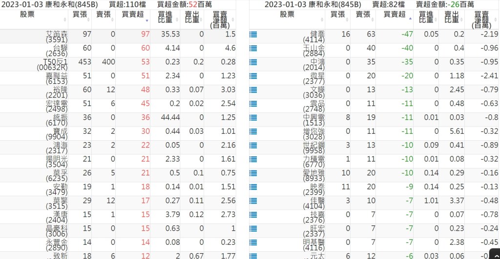 2023-0103關鍵券商買賣超 2023-01-04 股狗網小編 籌碼面每日資訊 發表留言 投資達人APP上線囉!!!『安裝APP』: 關鍵券商買賣超: 臺銀證券(1040): 台灣摩根士丹利(1470): 凱基台北(9268): 凱基信義(9216): 元大土城永寧(9875): 康和永和(845B) : 富邦建國(9658): 免責宣言 本網站文章所提供資訊僅供參考,並無任何推介買賣之意,投資人應自行承擔交易風險。 分享此文: 分享到 X(在新視窗中開啟) X 分享到 Facebook(在新視窗中開啟) Facebook 喜歡 正在載入...