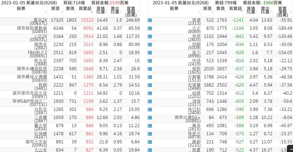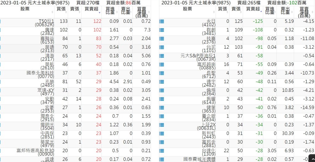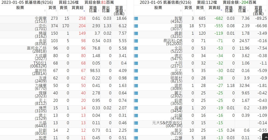 2023-0105關鍵券商買賣超 2023-01-06 股狗網小編 籌碼面每日資訊 發表留言 投資達人APP上線囉!!!『安裝APP』: 關鍵券商買賣超: 臺銀證券(1040): 台灣摩根士丹利(1470): 凱基台北(9268): 凱基信義(9216): 元大土城永寧(9875): 康和永和(845B) : 富邦建國(9658): 免責宣言 本網站文章所提供資訊僅供參考,並無任何推介買賣之意,投資人應自行承擔交易風險。 分享此文: 按一下即可分享至 X(在新視窗中開啟) X 按一下以分享至 Facebook(在新視窗中開啟) Facebook 喜歡 正在載入...