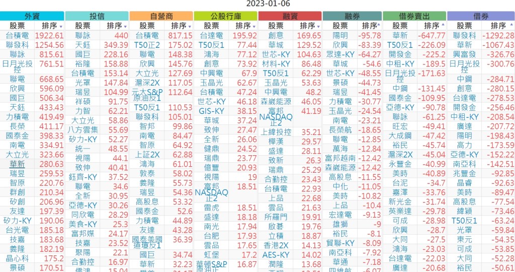 2023-0106上市【外資、投信】買賣超個股 2023-01-07 股狗網小編 投資誌-大盤 發表留言 投資達人APP上線囉!!!『安裝APP』 上市:【外資、投信】買超(依金額) (單位:百萬) 上市:【外資、投信】賣超(依金額) (單位:百萬) 上市:【外資、投信】買超(依張數) (單位:張數) 上市:【外資、投信】賣超(依張數) (單位:張數) 免責宣言 本網站文章所提供資訊僅供參考,並無任何推介買賣之意,投資人應自行承擔交易風險。 分享此文: 分享到 X(在新視窗中開啟) X 分享到 Facebook(在新視窗中開啟) Facebook 喜歡 正在載入...