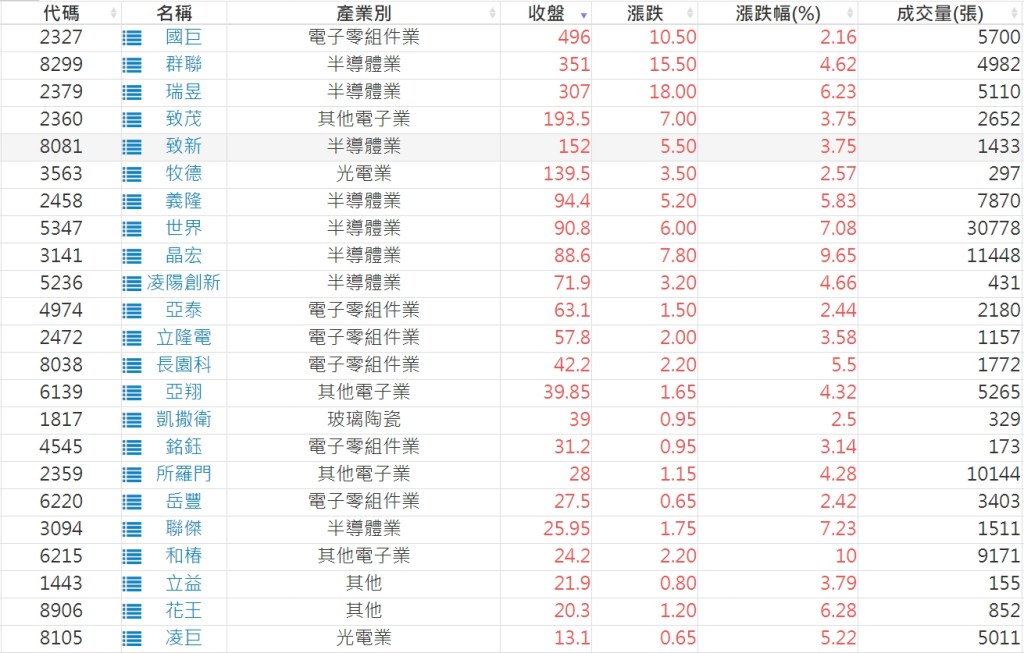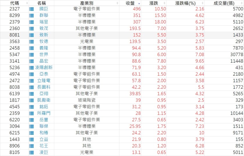 2023-0106股價創20日新高爆量上漲股 2023-01-07 股狗網小編 選股條件 發表留言 投資達人APP上線囉!!!『安裝APP』: 利用股狗選股的選股條件可以【挑選突破20日新高,爆量上漲起漲點股票】 1.股狗選股 https://www.stockdog.com.tw 2.選股條件: a.收盤價創20日新高 b.當日漲幅 > 2% 免責宣言 本網站文章所提供資訊僅供參考,並無任何推介買賣之意,投資人應自行承擔交易風險。 分享此文: 分享到 X(在新視窗中開啟) X 分享到 Facebook(在新視窗中開啟) Facebook 喜歡 正在載入...