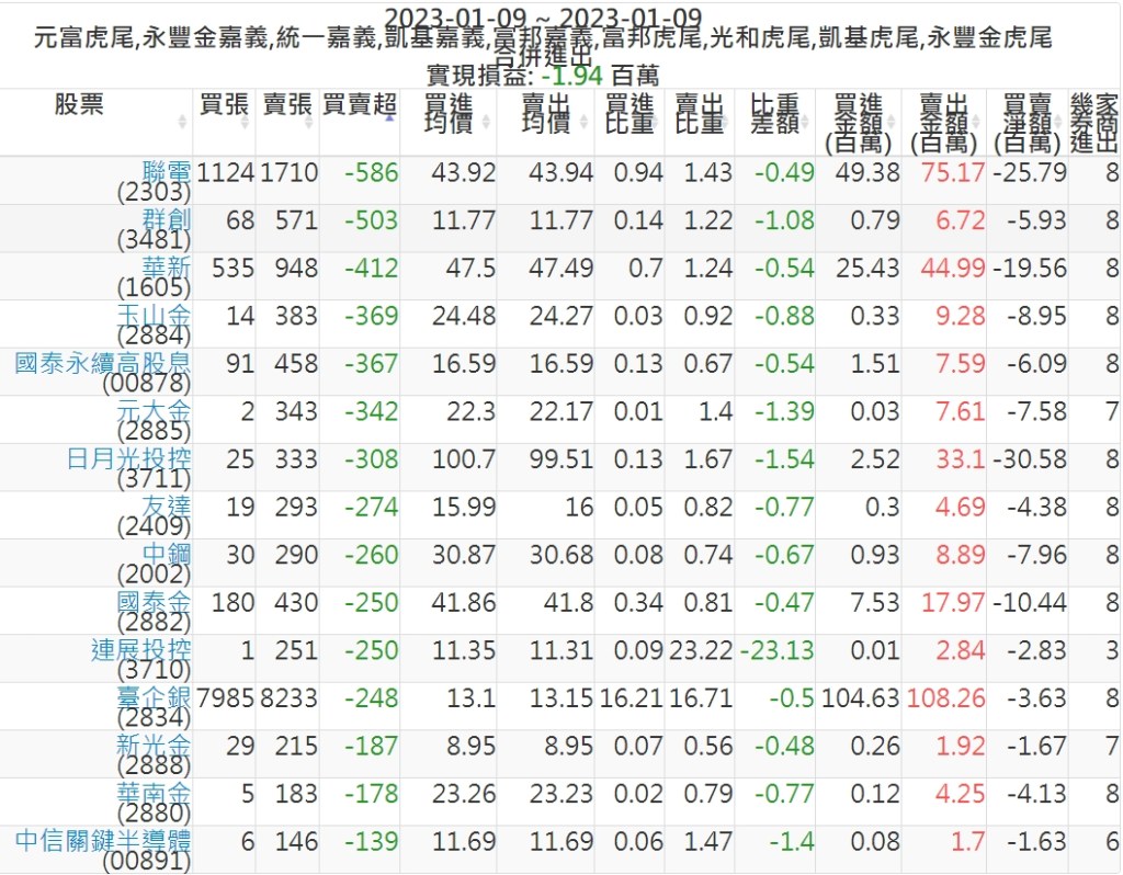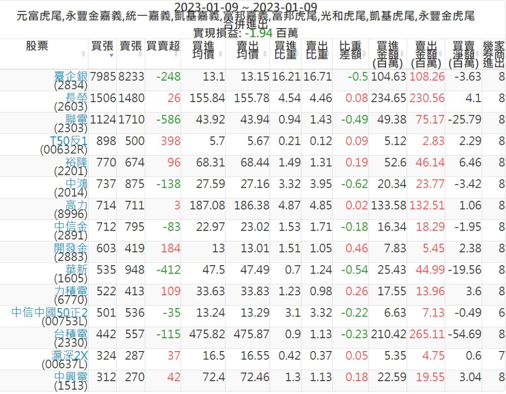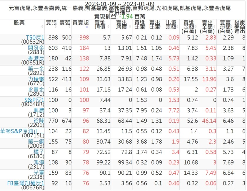 2023-0109主力買賣超個股 2023-01-10 股狗網小編 籌碼面每日資訊 發表留言 投資達人APP上線囉!!!『安裝APP』: 可參考下文 『如何查詢當沖、隔日沖分公司券商買賣』 主力當沖券商: 『元富虎尾』,『永豐金嘉義』,『統一嘉義』,『凱基嘉義』,『富邦嘉義』,『富邦虎尾』,『光和虎尾』,『凱基虎尾』,『永豐金虎尾』。 『當沖標的』 『買超股票』 『賣超股票』 免責宣言 本網站文章所提供資訊僅供參考,並無任何推介買賣之意,投資人應自行承擔交易風險。 分享此文: 分享到 X(在新視窗中開啟) X 分享到 Facebook(在新視窗中開啟) Facebook 喜歡 正在載入...