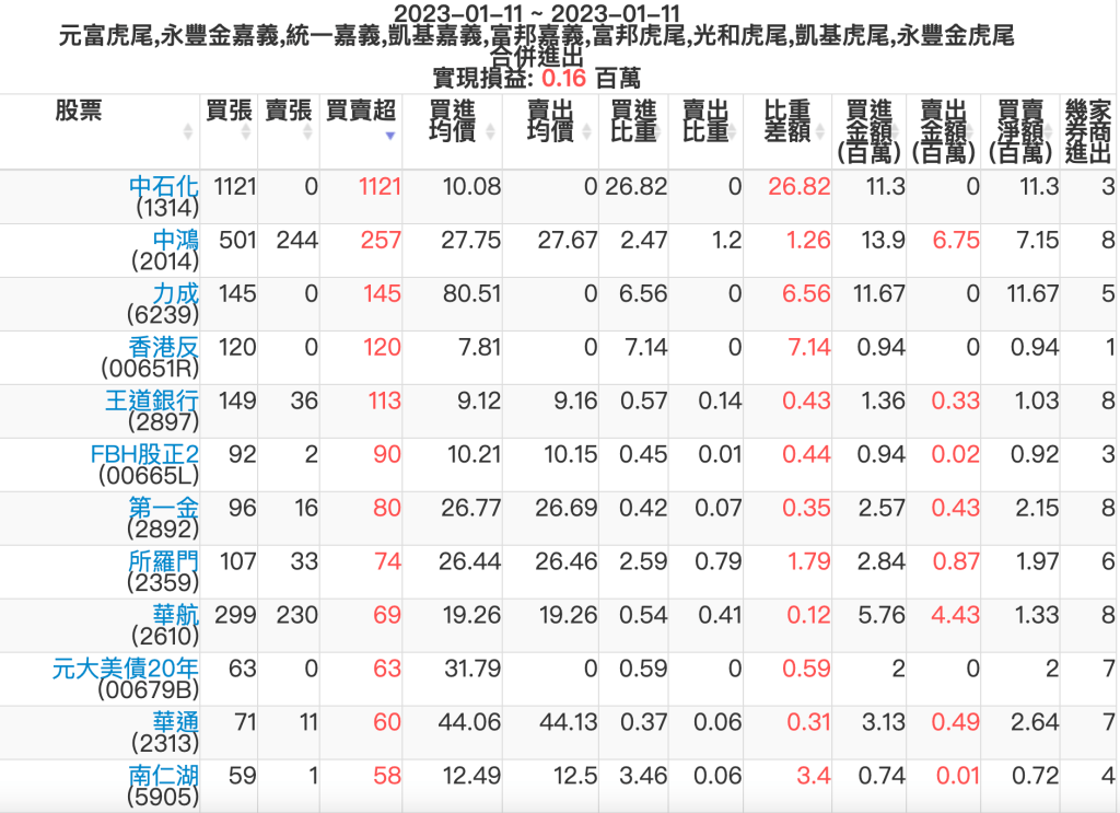 2023-0111主力買賣超個股 2023-01-12 股狗網小編 籌碼面每日資訊 發表留言 投資達人APP上線囉!!!『安裝APP』: 可參考下文 『如何查詢當沖、隔日沖分公司券商買賣』 主力當沖券商: 『元富虎尾』,『永豐金嘉義』,『統一嘉義』,『凱基嘉義』,『富邦嘉義』,『富邦虎尾』,『光和虎尾』,『凱基虎尾』,『永豐金虎尾』。 『當沖標的』 『買超股票』 『賣超股票』 免責宣言 本網站文章所提供資訊僅供參考,並無任何推介買賣之意,投資人應自行承擔交易風險。 分享此文: 按一下即可分享至 X(在新視窗中開啟) X 按一下以分享至 Facebook(在新視窗中開啟) Facebook 喜歡 正在載入...