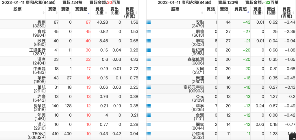 2023-0111關鍵券商買賣超 2023-01-12 股狗網小編 籌碼面每日資訊 發表留言 投資達人APP上線囉!!!『安裝APP』: 關鍵券商買賣超: 臺銀證券(1040): 台灣摩根士丹利(1470): 凱基台北(9268): 凱基信義(9216): 元大土城永寧(9875): 康和永和(845B) : 富邦建國(9658): 免責宣言 本網站文章所提供資訊僅供參考,並無任何推介買賣之意,投資人應自行承擔交易風險。 分享此文: 按一下即可分享至 X(在新視窗中開啟) X 按一下以分享至 Facebook(在新視窗中開啟) Facebook 喜歡 正在載入...
