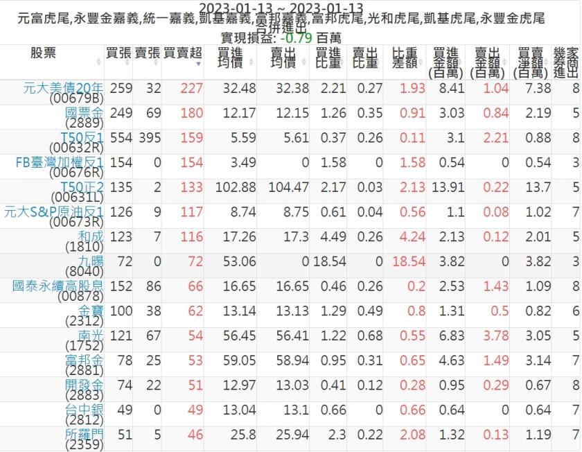 2023-0113主力買賣超個股 2023-01-14 股狗網小編 籌碼面每日資訊 發表留言 投資達人APP上線囉!!!『安裝APP』: 可參考下文 『如何查詢當沖、隔日沖分公司券商買賣』 主力當沖券商: 『元富虎尾』,『永豐金嘉義』,『統一嘉義』,『凱基嘉義』,『富邦嘉義』,『富邦虎尾』,『光和虎尾』,『凱基虎尾』,『永豐金虎尾』。 『當沖標的』 『買超股票』 『賣超股票』 免責宣言 本網站文章所提供資訊僅供參考,並無任何推介買賣之意,投資人應自行承擔交易風險。 分享此文: 分享到 X(在新視窗中開啟) X 分享到 Facebook(在新視窗中開啟) Facebook 喜歡 正在載入...