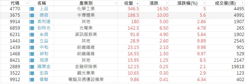 2023-0113股價創20日新高爆量上漲股 2023-01-15 股狗網小編 選股條件 發表留言 投資達人APP上線囉!!!『安裝APP』: 利用股狗選股的選股條件可以【挑選突破20日新高,爆量上漲起漲點股票】 1.股狗選股 https://www.stockdog.com.tw 2.選股條件: a.收盤價創20日新高 b.當日漲幅 > 2% 免責宣言 本網站文章所提供資訊僅供參考,並無任何推介買賣之意,投資人應自行承擔交易風險。 分享此文: 分享到 X(在新視窗中開啟) X 分享到 Facebook(在新視窗中開啟) Facebook 喜歡 正在載入...
