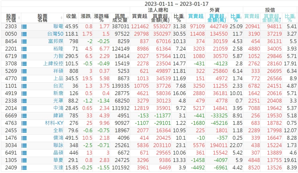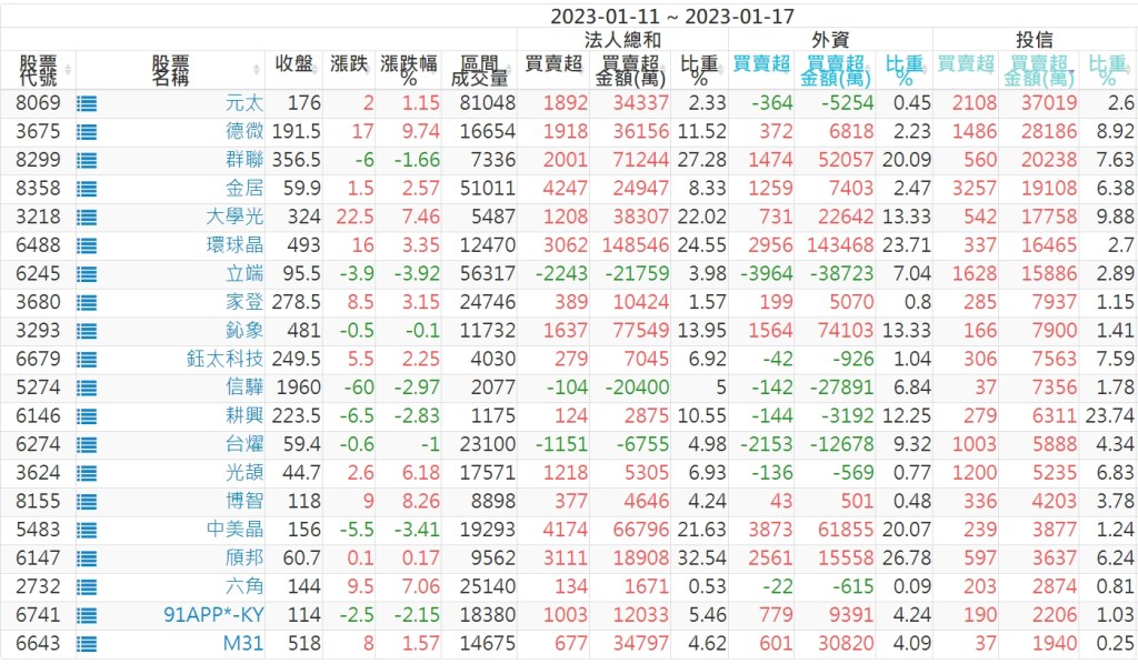2023/01/11~2023/01/17近5日【投信】買賣超個股 2023-01-20 股狗網小編 投資誌-大盤 發表留言 投資達人APP上線囉!!!『安裝APP』: 【上市投信買超個股】(以金額排行,單位:萬) 【上市投信賣超個股】(以金額排行,單位:萬) 【上櫃投信買超個股】(以金額排行,單位:萬) 【上櫃投信賣超個股】(以金額排行,單位:萬) 免責宣言 本網站文章所提供資訊僅供參考,並無任何推介買賣之意,投資人應自行承擔交易風險。 分享此文: 分享到 X(在新視窗中開啟) X 分享到 Facebook(在新視窗中開啟) Facebook 喜歡 正在載入...