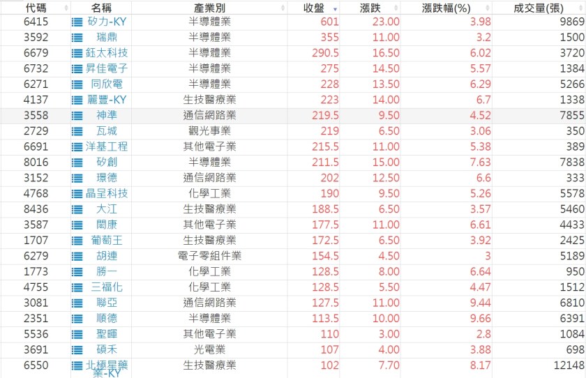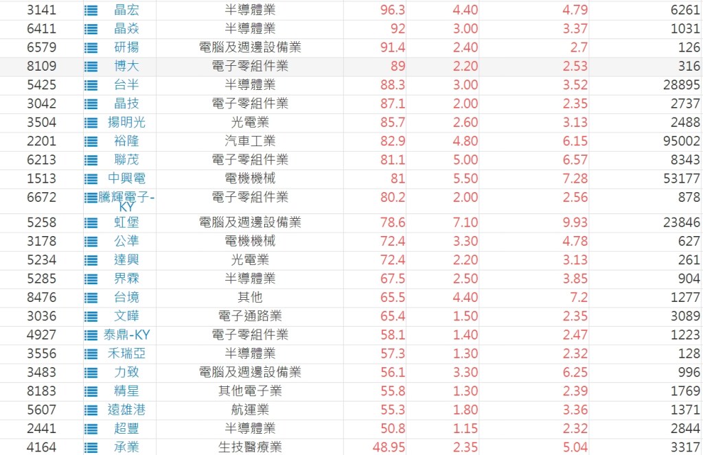 2023-0131股價創20日新高爆量上漲股 2023-02-01 股狗網小編 選股條件 發表留言 投資達人APP上線囉!!!『安裝APP』: 利用股狗選股的選股條件可以【挑選突破20日新高,爆量上漲起漲點股票】 1.股狗選股 https://www.stockdog.com.tw 2.選股條件: a.收盤價創20日新高 b.當日漲幅 > 2% C.成交量大於5日均量2倍 免責宣言 本網站文章所提供資訊僅供參考,並無任何推介買賣之意,投資人應自行承擔交易風險。 分享此文: 分享到 X(在新視窗中開啟) X 分享到 Facebook(在新視窗中開啟) Facebook 喜歡 正在載入...