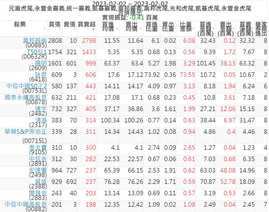 2023-0202主力買賣超個股 2023-02-03 股狗網小編 籌碼面每日資訊 發表留言 投資達人APP上線囉!!!『安裝APP』: 可參考下文 『如何查詢當沖、隔日沖分公司券商買賣』 主力當沖券商: 『元富虎尾』,『永豐金嘉義』,『統一嘉義』,『凱基嘉義』,『富邦嘉義』,『富邦虎尾』,『光和虎尾』,『凱基虎尾』,『永豐金虎尾』。 『當沖標的』 『買超股票』 『賣超股票』 免責宣言 本網站文章所提供資訊僅供參考,並無任何推介買賣之意,投資人應自行承擔交易風險。 分享此文: 分享到 X(在新視窗中開啟) X 分享到 Facebook(在新視窗中開啟) Facebook 喜歡 正在載入...