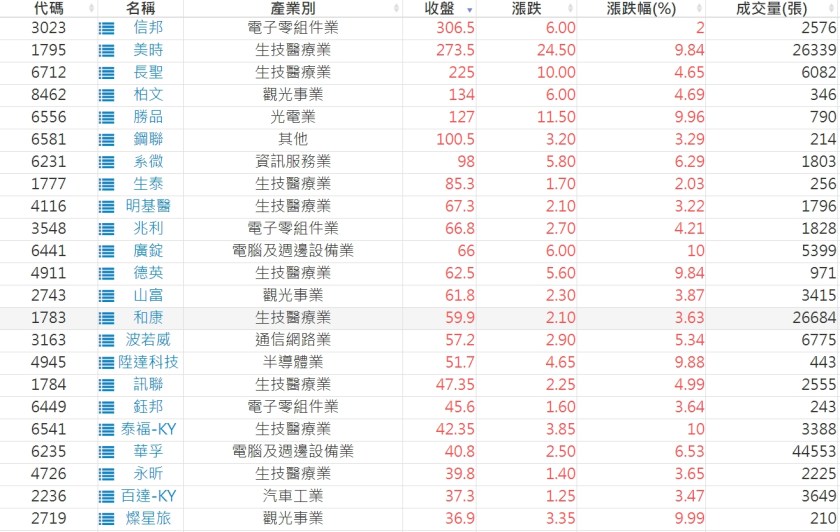 2023-0206股價創20日新高爆量上漲股 2023-02-07 股狗網小編 選股條件 發表留言 投資達人APP上線囉!!!『安裝APP』: 利用股狗選股的選股條件可以【挑選突破20日新高,爆量上漲起漲點股票】 1.股狗選股 https://www.stockdog.com.tw 2.選股條件: a.收盤價創20日新高 b.當日漲幅 > 2% C.成交量大於5日均量2倍 免責宣言 本網站文章所提供資訊僅供參考,並無任何推介買賣之意,投資人應自行承擔交易風險。 分享此文: 分享到 X(在新視窗中開啟) X 分享到 Facebook(在新視窗中開啟) Facebook 喜歡 正在載入...