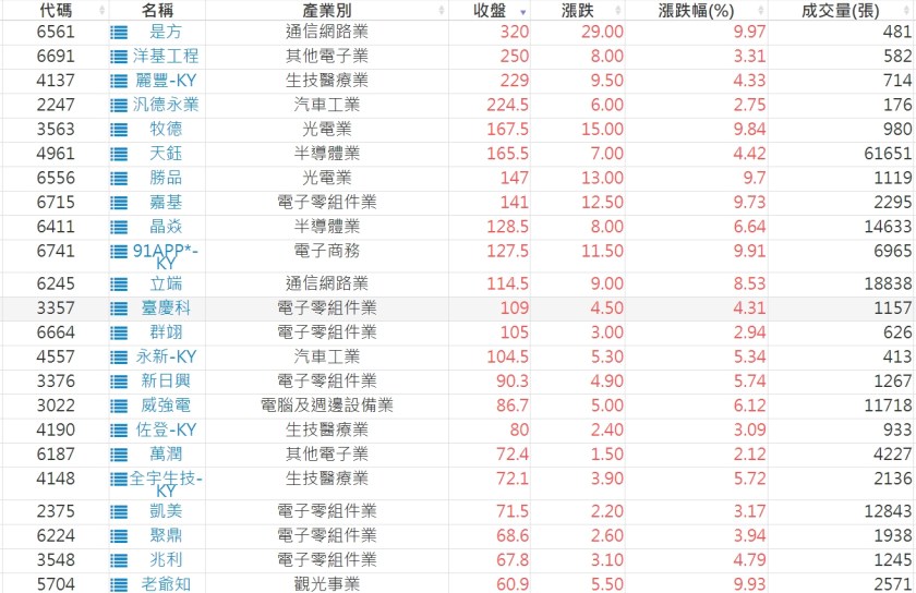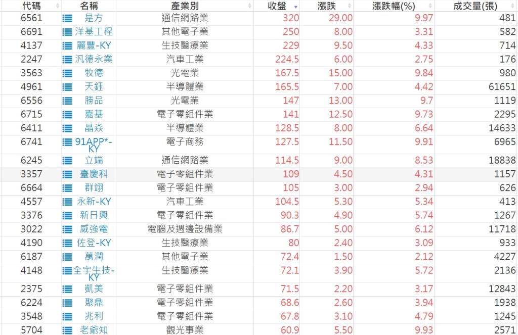2023-0217股價創20日新高爆量上漲股 2023-02-18 股狗網小編 選股條件 發表留言 投資達人APP上線囉!!!『安裝APP』: 利用股狗選股的選股條件可以【挑選突破20日新高,爆量上漲起漲點股票】 1.股狗選股 https://www.stockdog.com.tw 2.選股條件: a.收盤價創20日新高 b.當日漲幅 > 2% C.成交量大於5日均量2倍 免責宣言 本網站文章所提供資訊僅供參考,並無任何推介買賣之意,投資人應自行承擔交易風險。 分享此文: 分享到 X(在新視窗中開啟) X 分享到 Facebook(在新視窗中開啟) Facebook 喜歡 正在載入...
