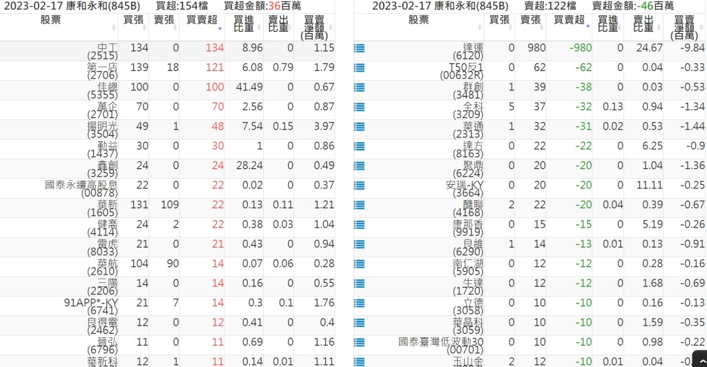 2023-0220關鍵券商買賣超 2023-02-21 股狗網小編 籌碼面每日資訊 發表留言 投資達人APP上線囉!!!『安裝APP』: 關鍵券商買賣超: 臺銀證券(1040): 台灣摩根士丹利(1470): 凱基台北(9268): 凱基信義(9216): 元大土城永寧(9875): 康和永和(845B) : 富邦建國(9658): 免責宣言 本網站文章所提供資訊僅供參考,並無任何推介買賣之意,投資人應自行承擔交易風險。 分享此文: 分享到 X(在新視窗中開啟) X 分享到 Facebook(在新視窗中開啟) Facebook 喜歡 正在載入...