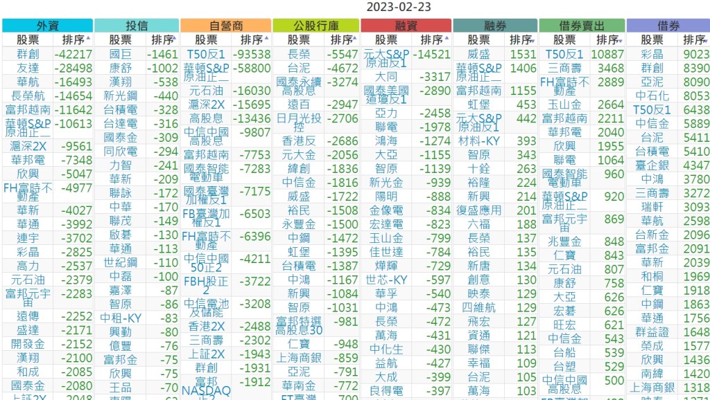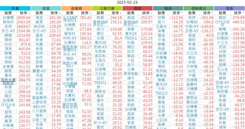2023-0223上市【外資、投信】買賣超個股 2023-02-24 股狗網小編 投資誌-大盤 發表留言 投資達人APP上線囉!!!『安裝APP』 上市:【外資、投信】買超(依金額) (單位:百萬) 上市:【外資、投信】賣超(依金額) (單位:百萬) 上市:【外資、投信】買超(依張數) (單位:張數) 上市:【外資、投信】賣超(依張數) (單位:張數) 免責宣言 本網站文章所提供資訊僅供參考,並無任何推介買賣之意,投資人應自行承擔交易風險。 分享此文: 分享到 X(在新視窗中開啟) X 分享到 Facebook(在新視窗中開啟) Facebook 喜歡 正在載入...